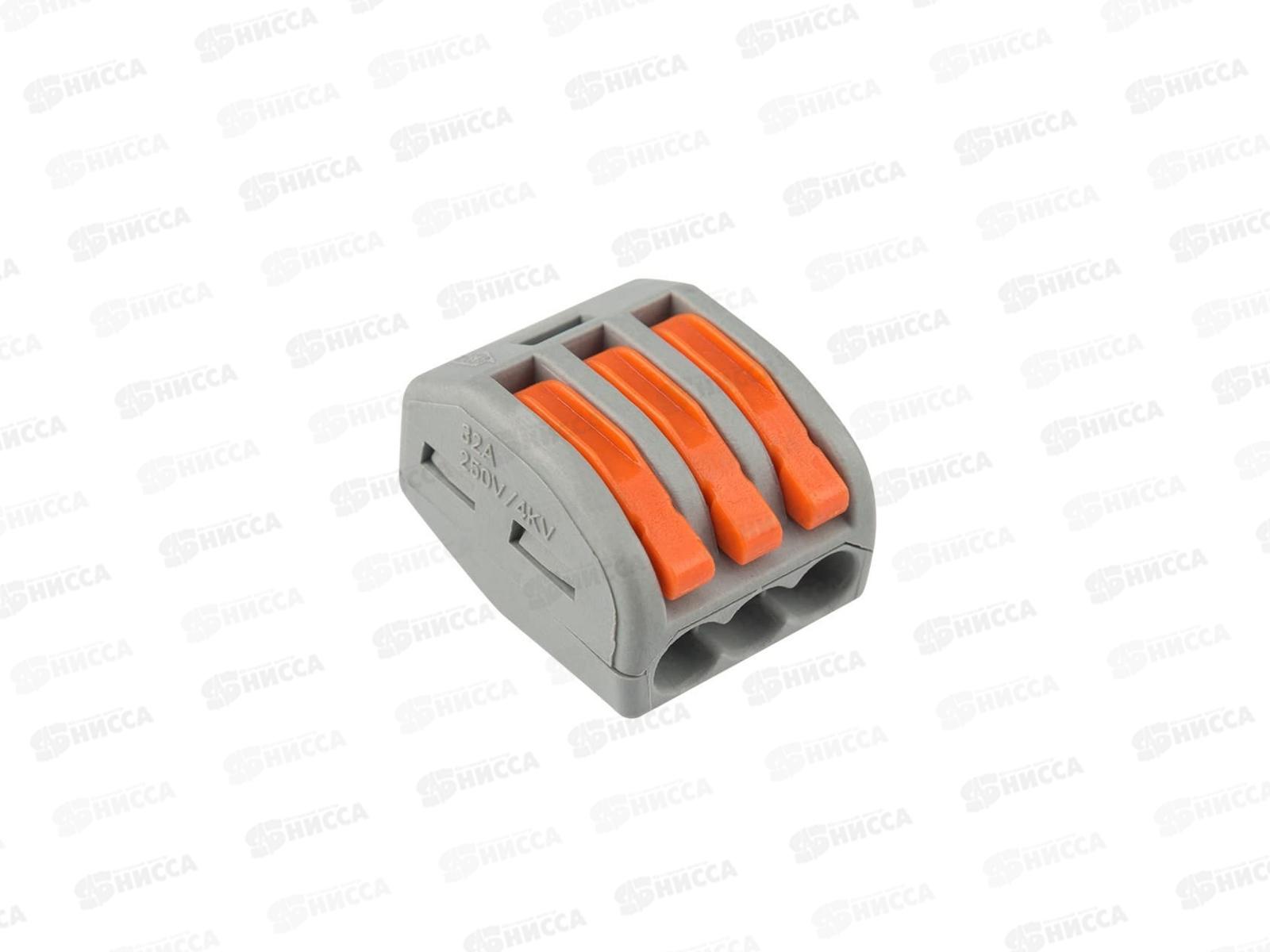 Код:409625; Универсальная клемма REXANT 3-проводная, серая (0,08-2,5/4мм), 07-5253-4 *50