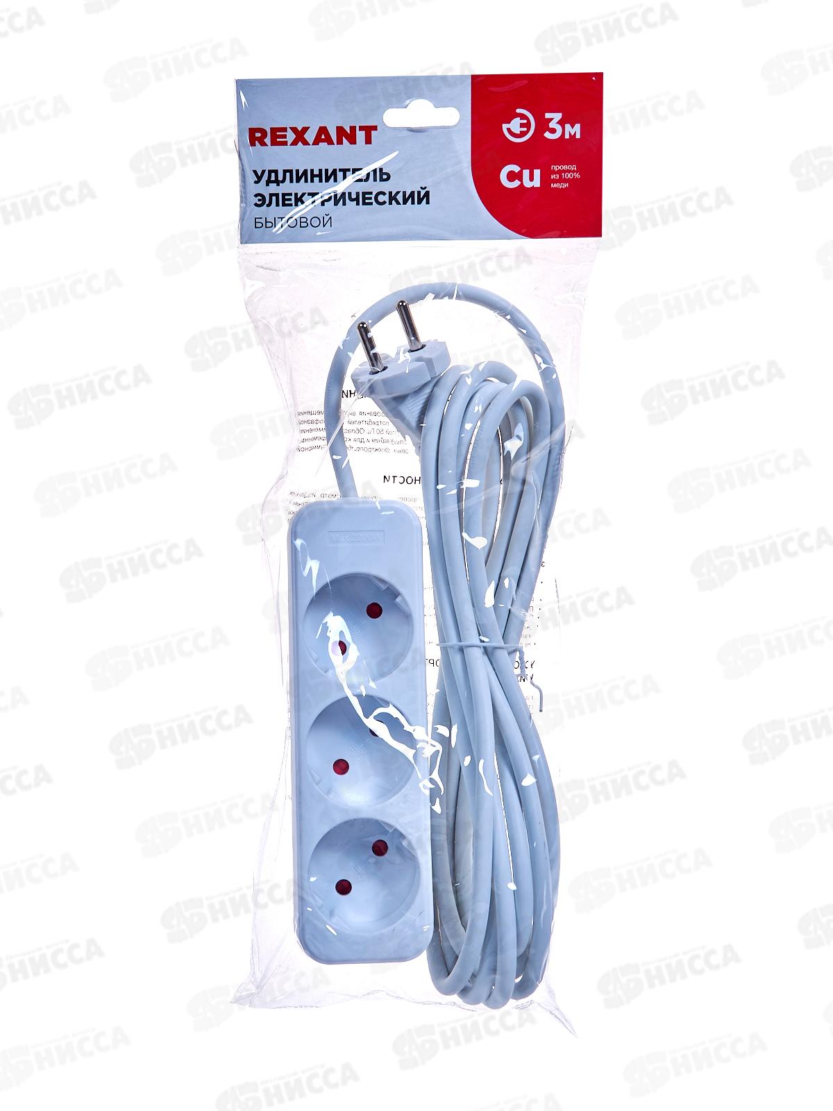 Код:424780; Удлинитель REXANT 3 гнезда 3м 2*0.75, белый, 11-8733 *40