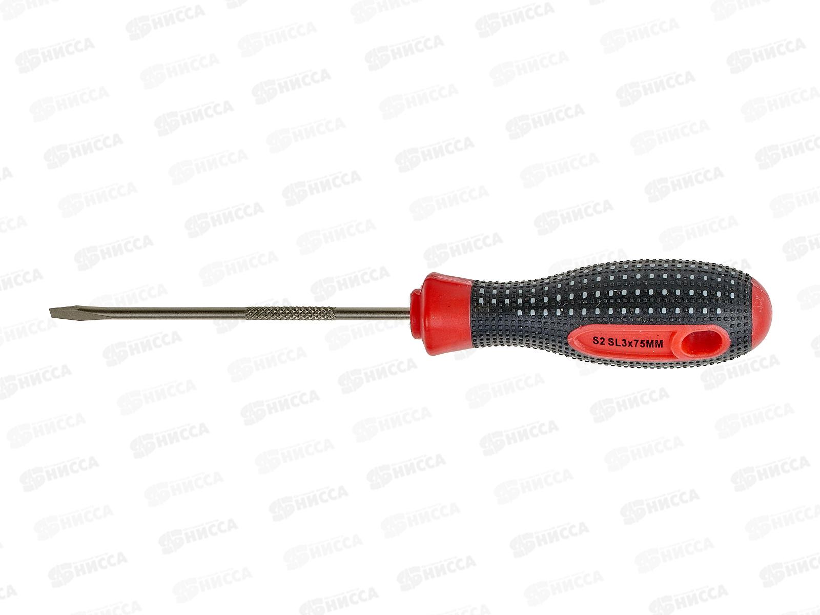 Код:506801; Отвертка шлицевая SL3x75мм трех-ая,сталь S2 Rexant 12-4721-1