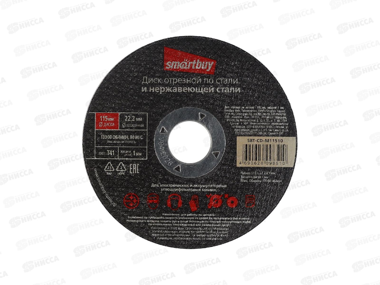 Код:534443; Диск отрезной по металлу 115мм толщина 1мм Smartbuy tools