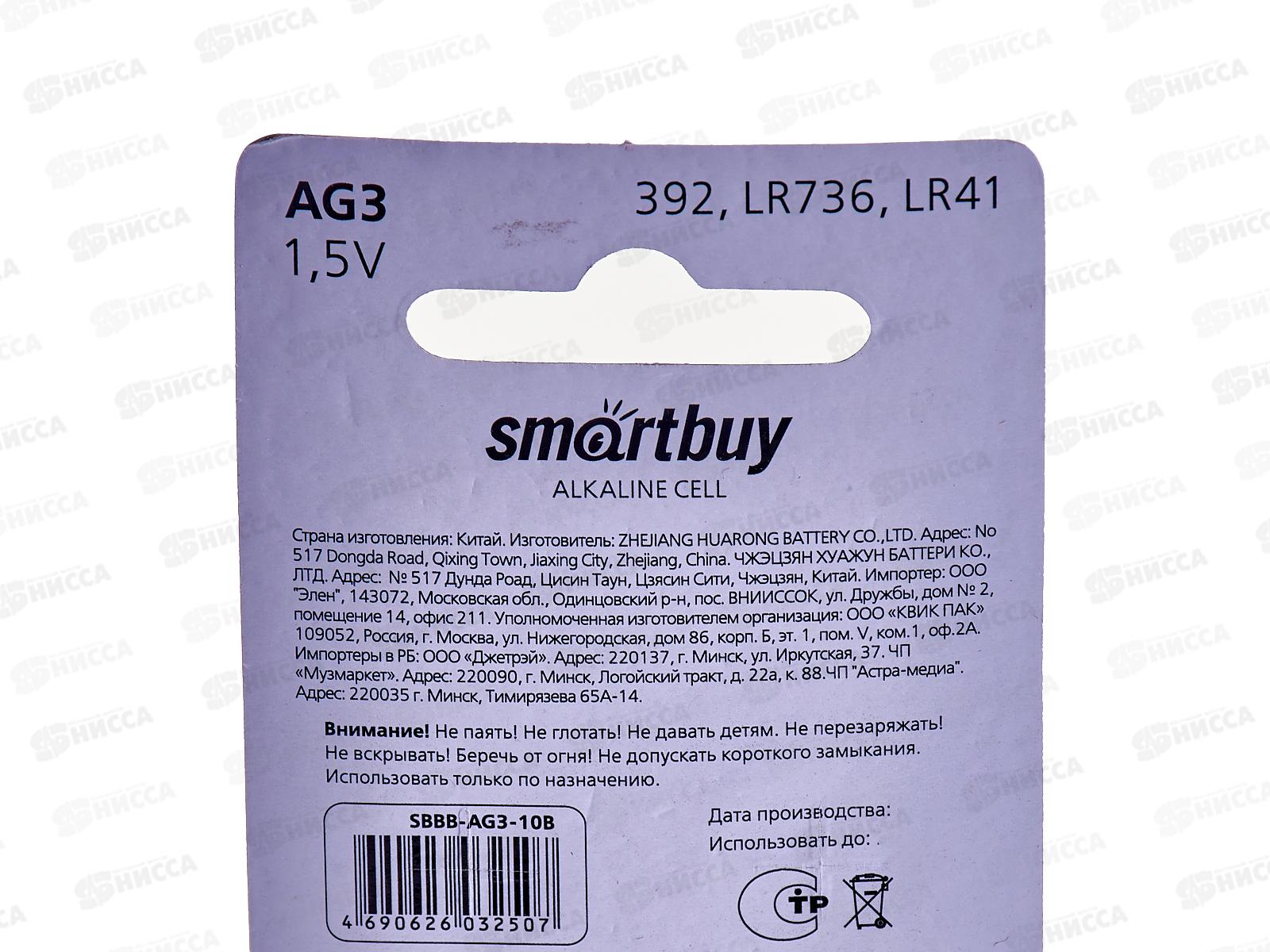 Батарейка SmartBuy AG3-10B *10/100/2000