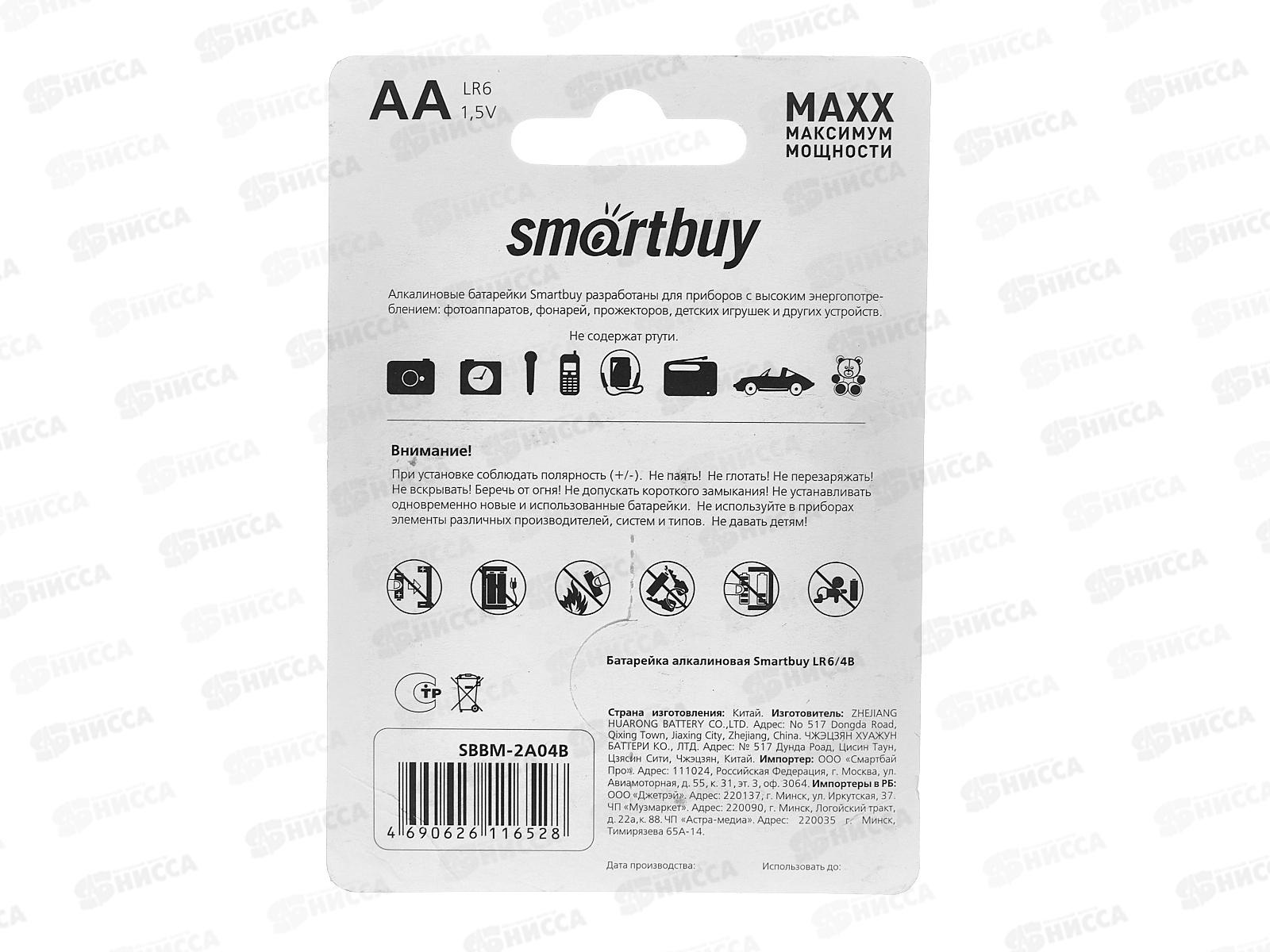 Батарейка SmartBuy LR6/4B MAXX *48/480