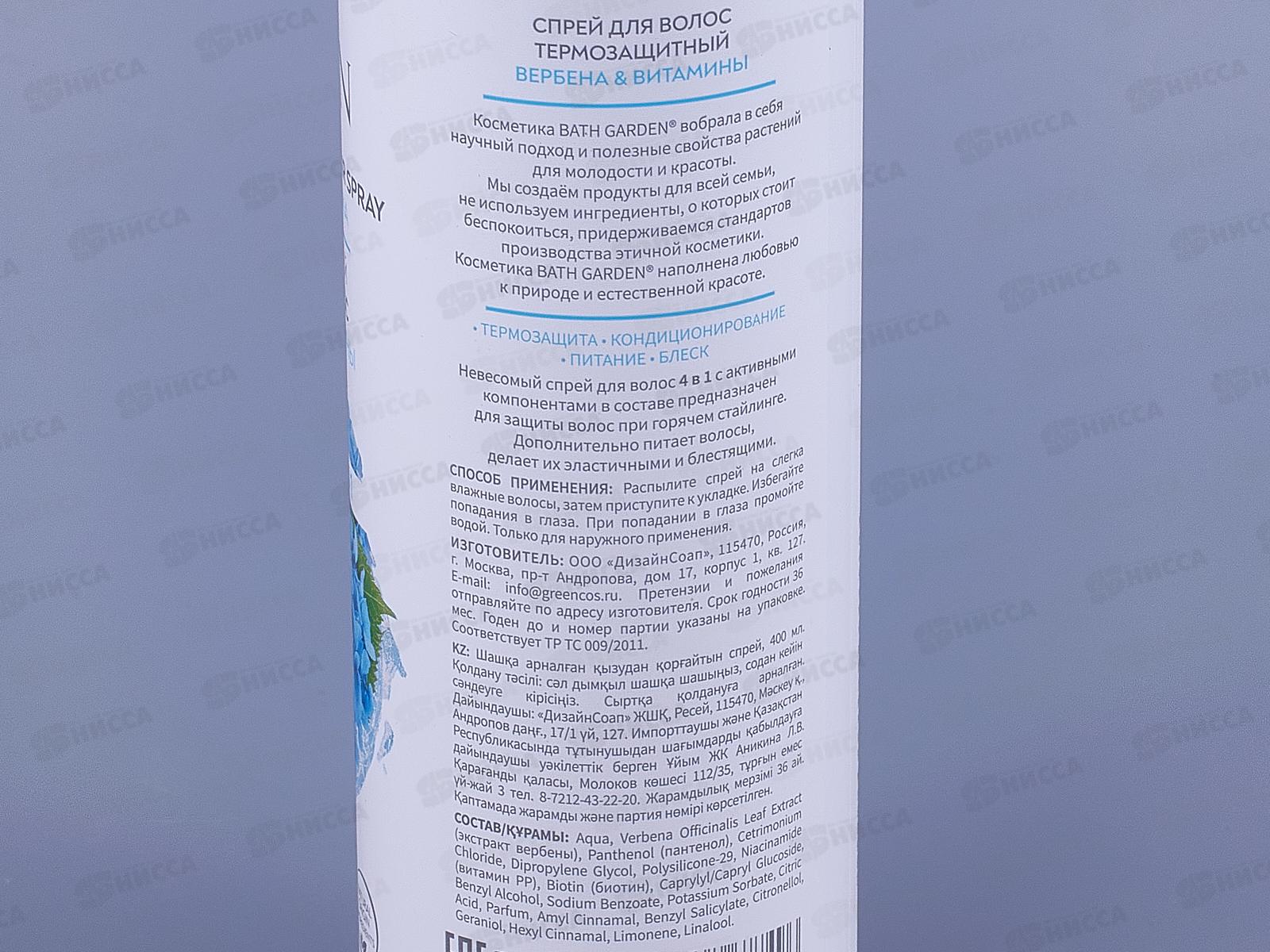 BATH GARDEN Спрей термозащитный для волос Вербена и Витамины 400мл 411117