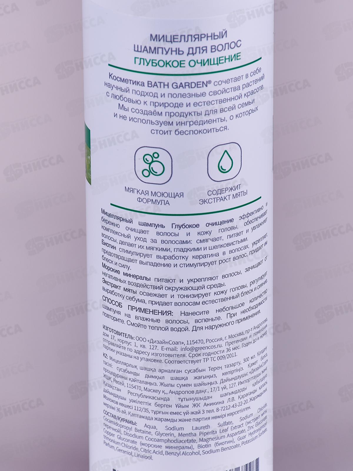 BATH GARDEN Мицеллярный шампунь для волос Глубокое очищение 300мл 411123 *8