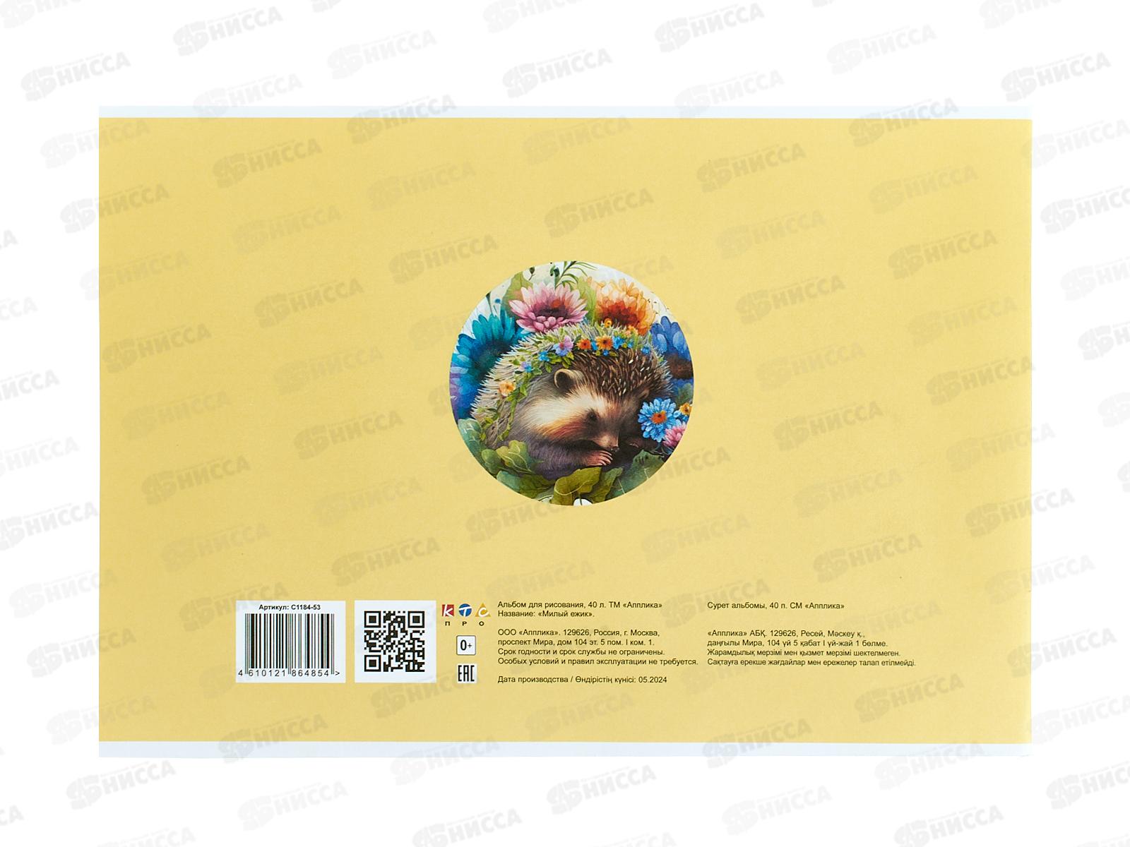 Альбом д/рис.40л Апплика, Милый ежик, С1184-53*30
