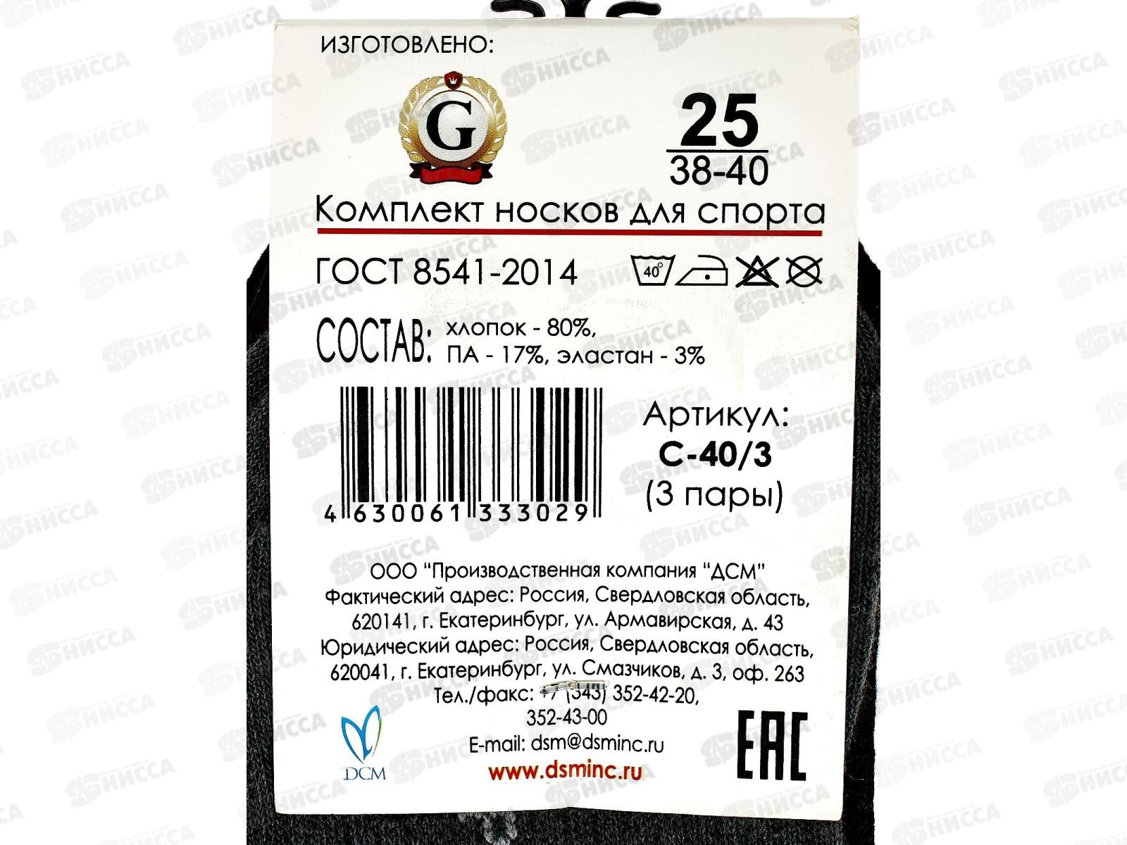 Носки для спорта С-40/3 3 пары GRAND LINE р-25