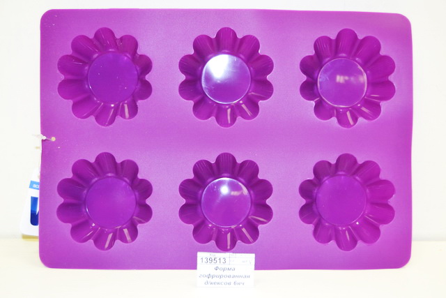 Форма для выпечки размером 25,5х18х3,5 см из силикона, разделенная на 6 круглых ячеек с ровным гладким дном и гофрированной стенкой, предназначена для...