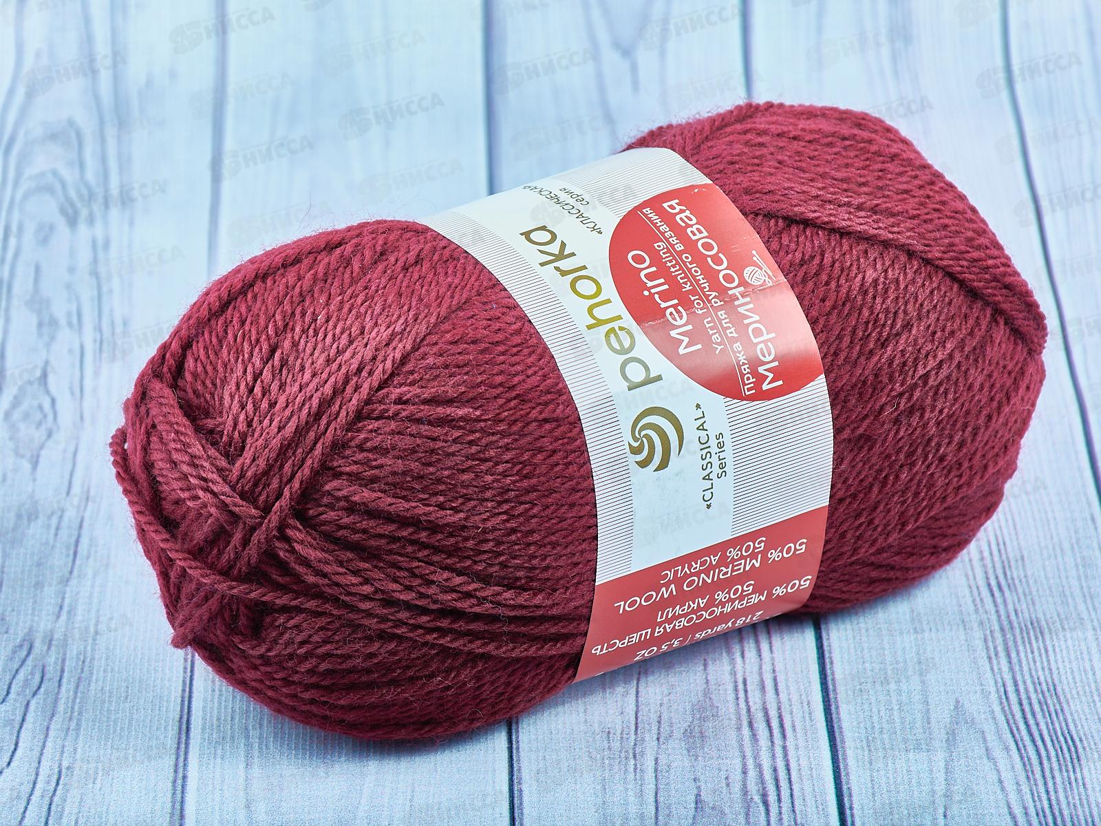 Код:398235; Пряжа Мериносовая 07 Бордовый 100г шерсть50% акр50%
