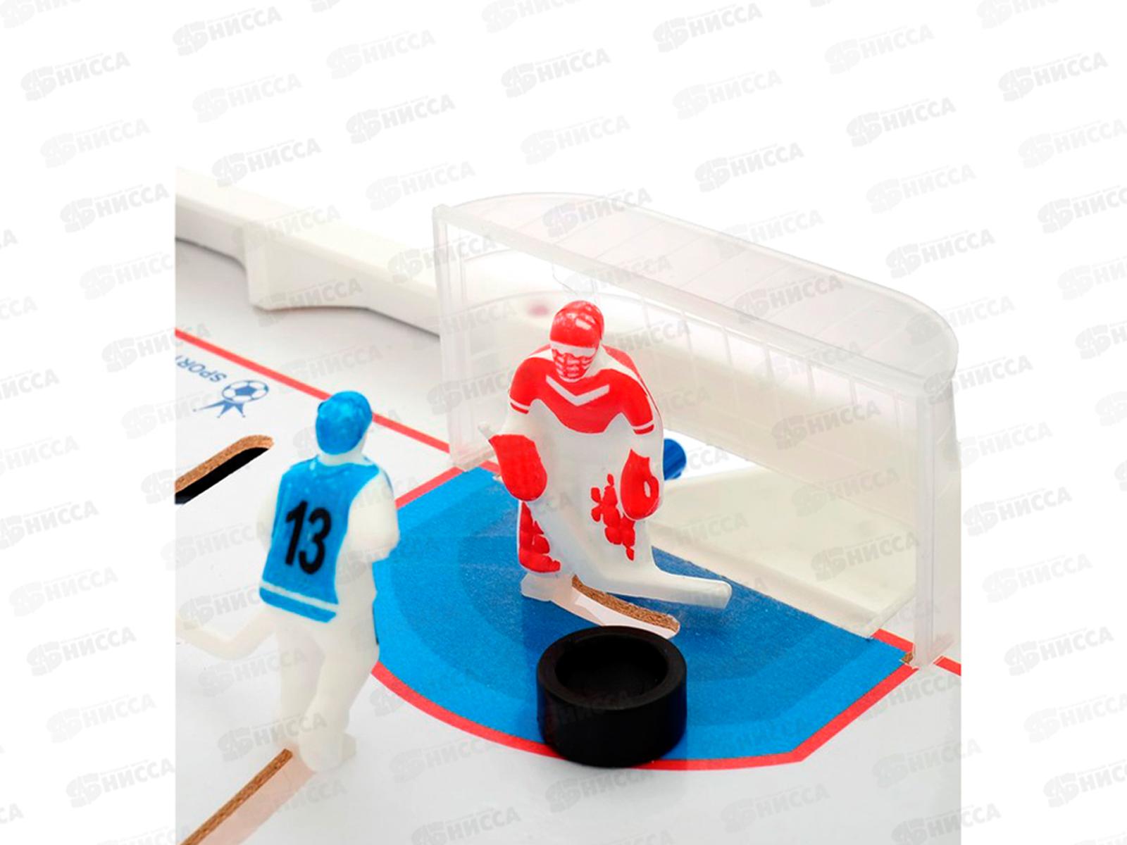Комплектация: игровое поле, 10 фигурок хоккеистов, 2 фигурки вратарей, 2 ворот, 2 шайбы