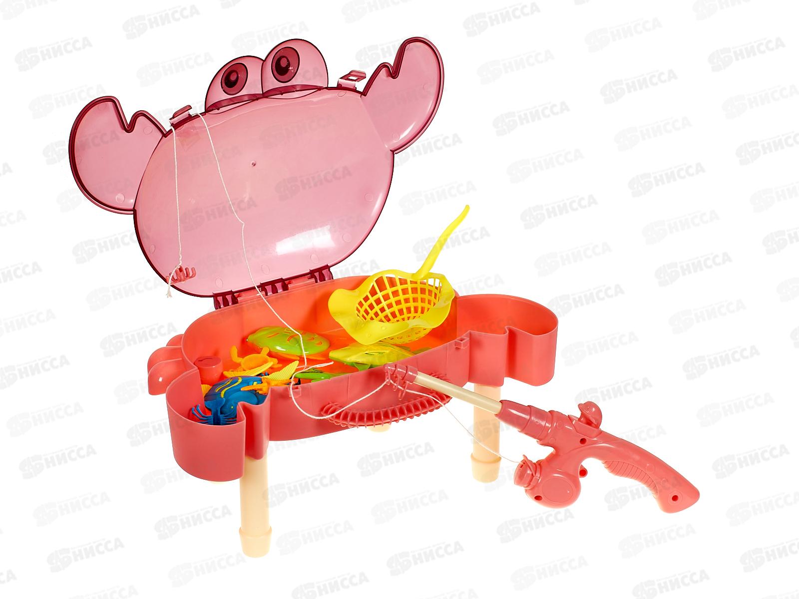 Код:565836; Рыбалка магнитная 1001935 (удочка, морские жители 10шт, садок, ванночка) розовая, зеленая
