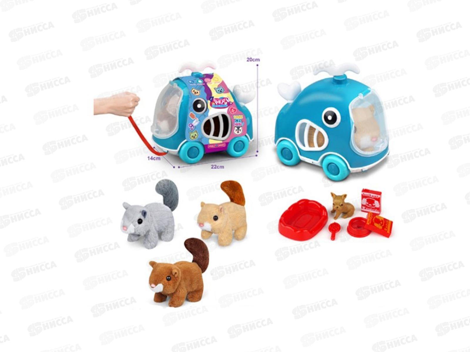 Код:591776; Бельчонок мягкий на бат. 3108506 с аксессуарами, 3 вида, 22*20*14см