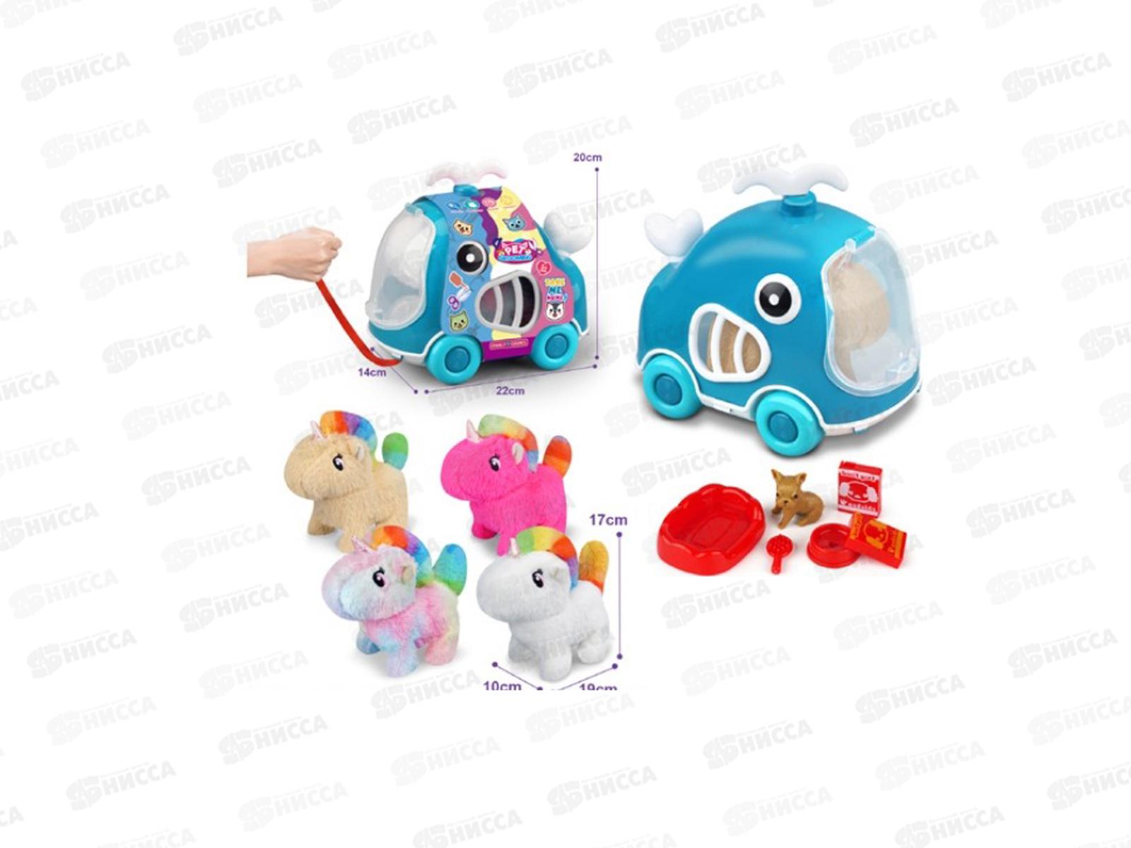 Код:591772; Единорог мягкий на бат. 3108503 с аксессуарами, 4 вида, 22*20*14см