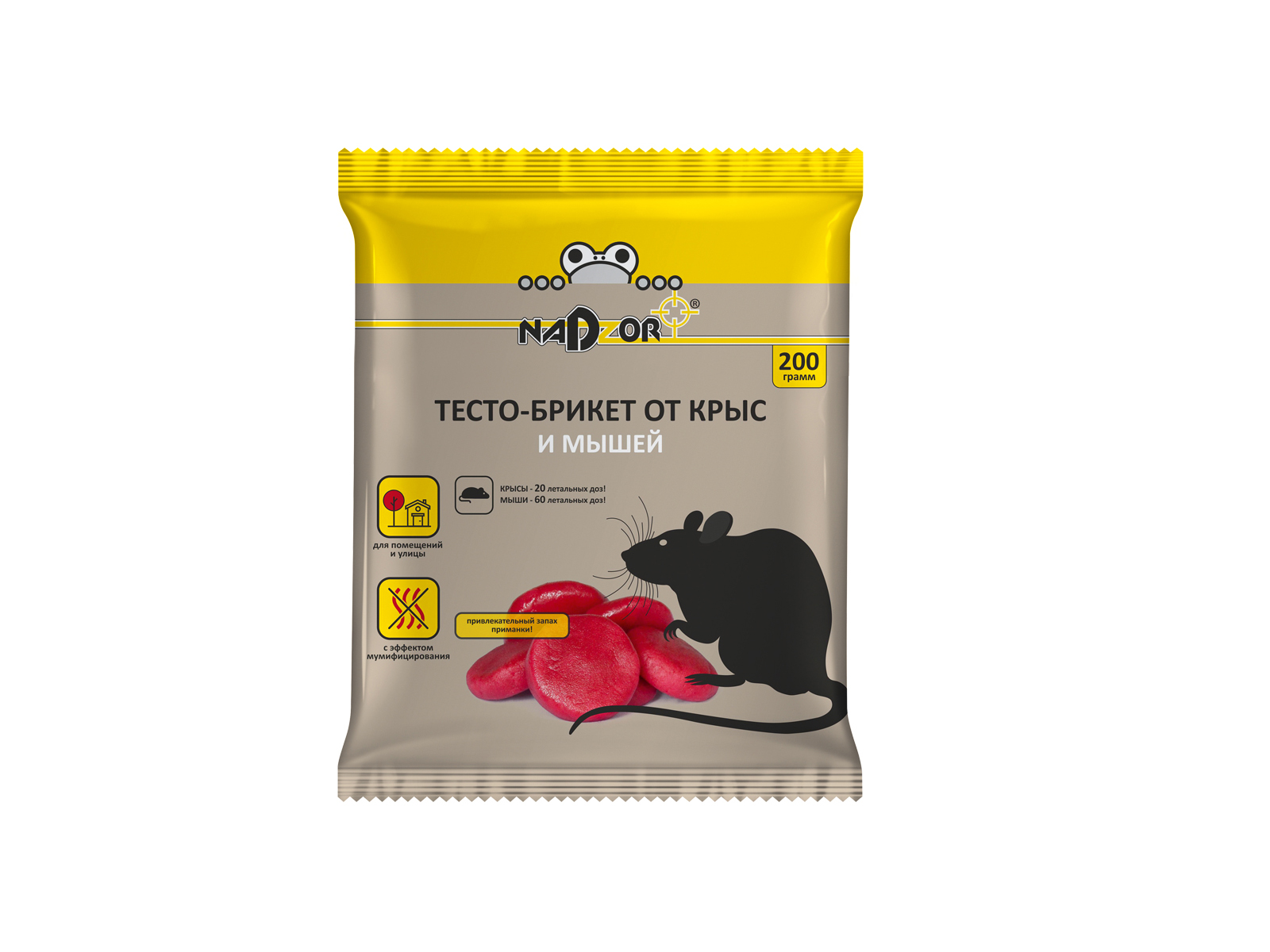 Код:351703; NADZOR тесто-брикет от мышей и крыс 200г *25