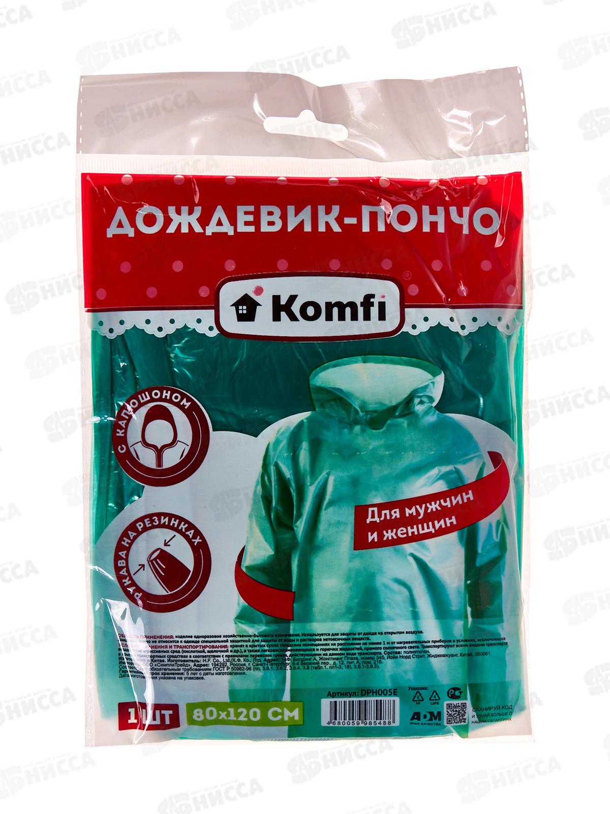 Код:409177; Дождевик Komfi зеленый EVA 005G с капюшоном на кнопках *50 409