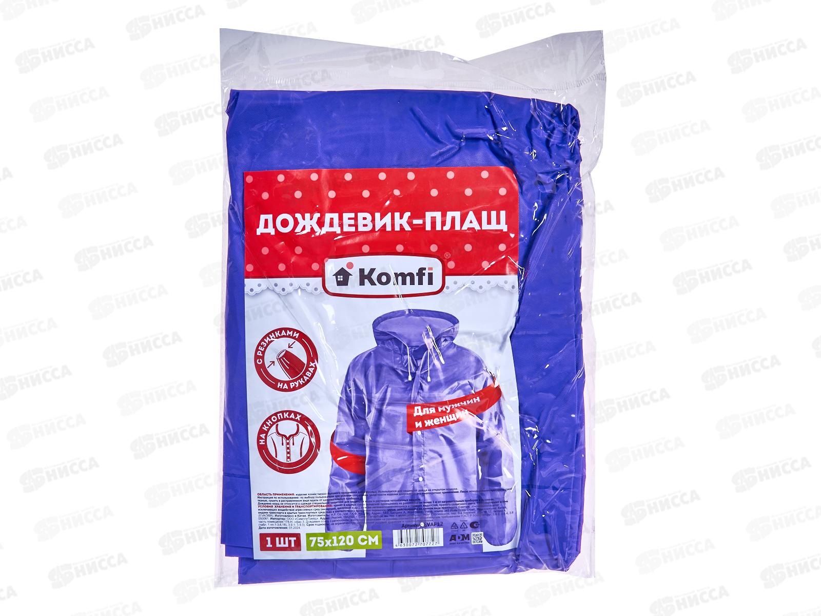 Код:409178; Дождевик Komfi синий EVA 005B с капюшоном на кнопках *50 410