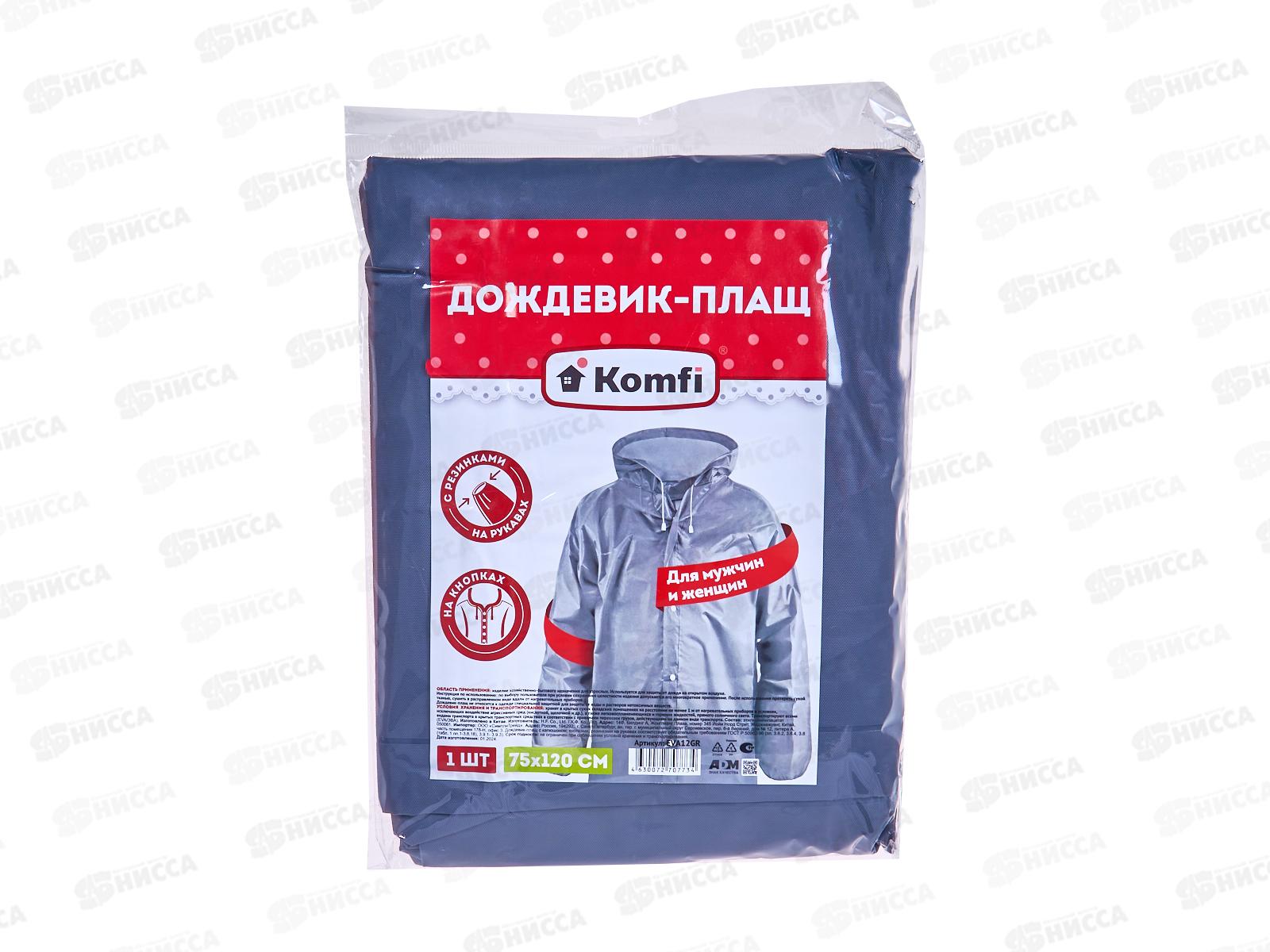 Код:420208; Дождевик Komfi черный EVA BL1 с капюшоном на кнопках *50 799