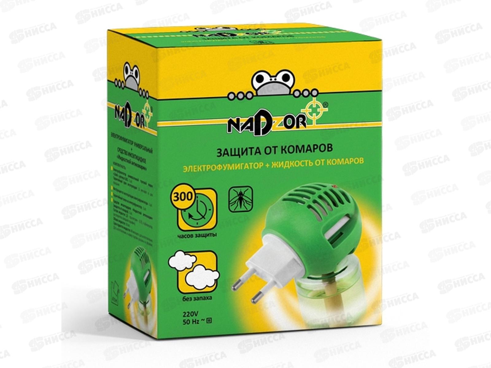 Код:356815; NADZOR Комплект с жидкостью от комаров на 30 ночей и универсальным электрофумигатором *24