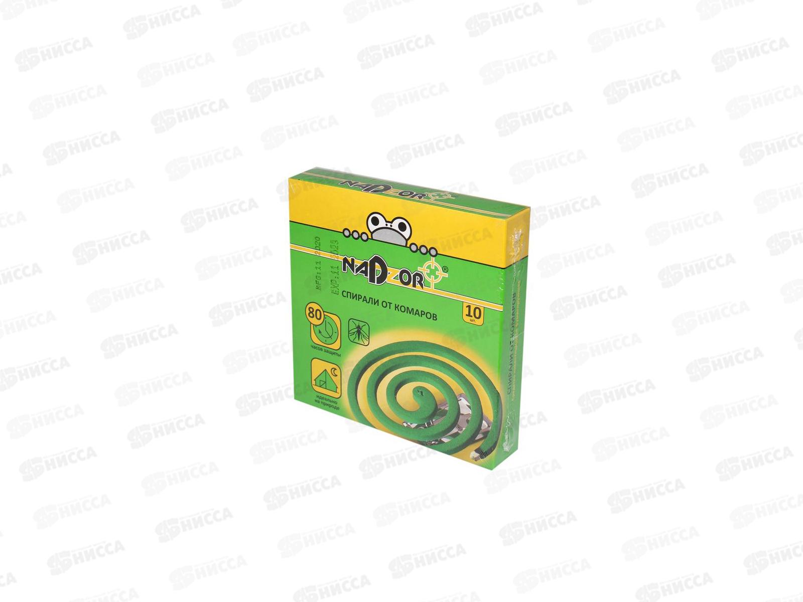 Код:408955; NADZOR Спирали от комаров малодымные без запаха зеленые 10шт *60