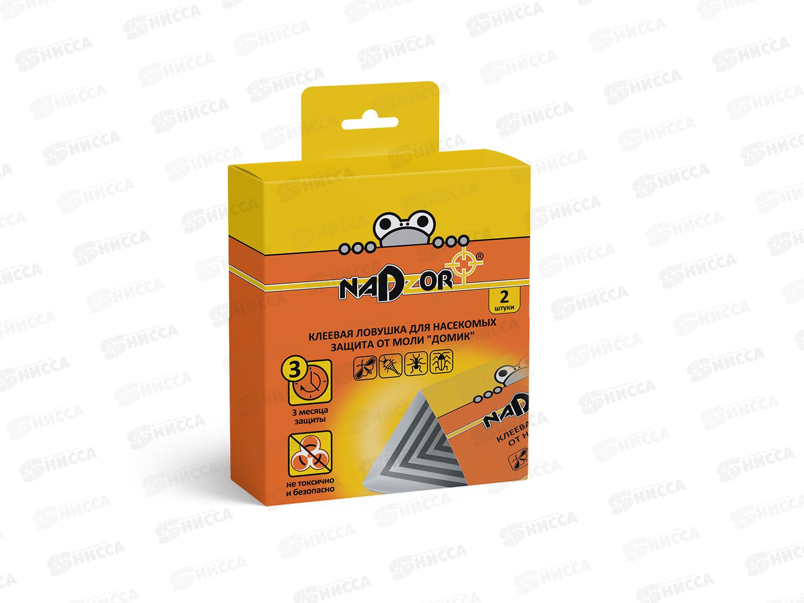 Код:417604; NADZOR клеевая ловушка для защиты от пищевой моли "Домик" 2шт *48