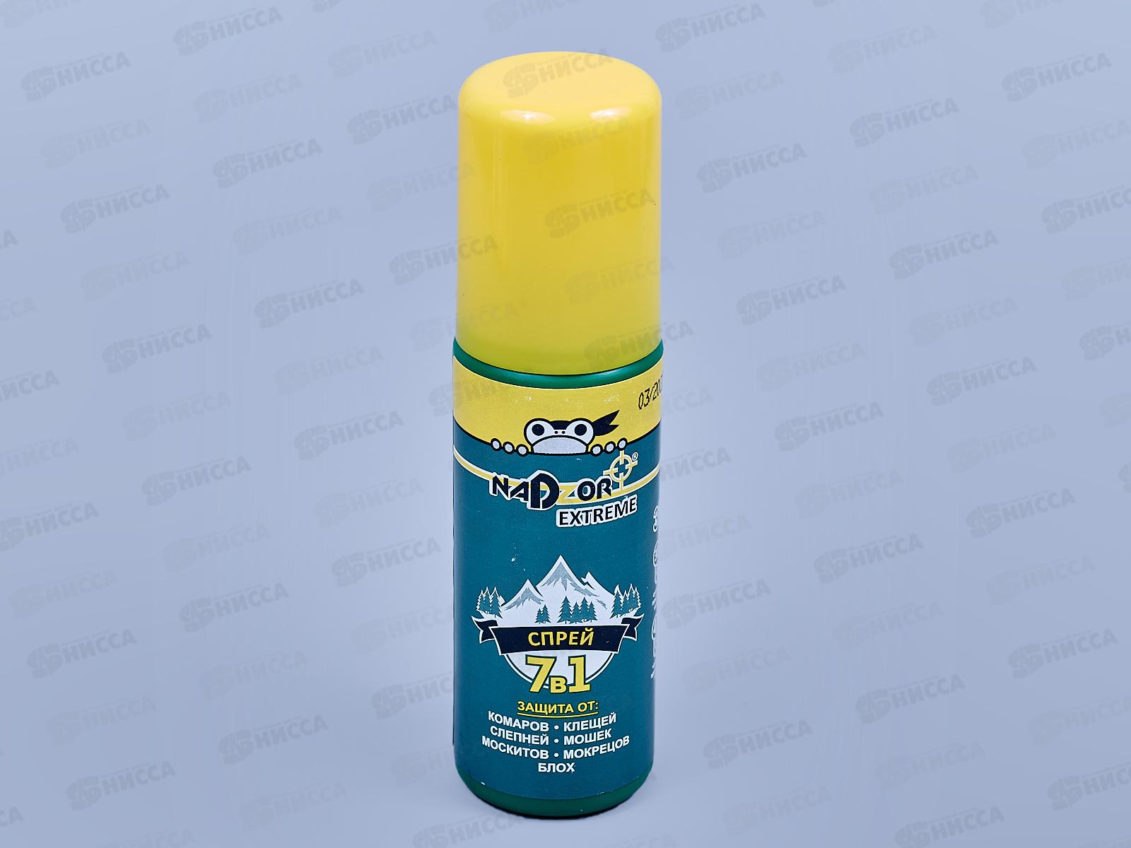 Код:441920; NADZOR Спрей Extreme 7в1 (от комаров, клещей, мошки, мокрецов, слепней, москитов, блох) 90мл *36