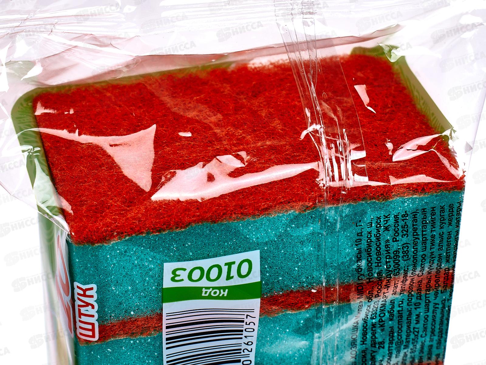 Губка для посуды ХОЗЯЮШКА 10штук миди *40