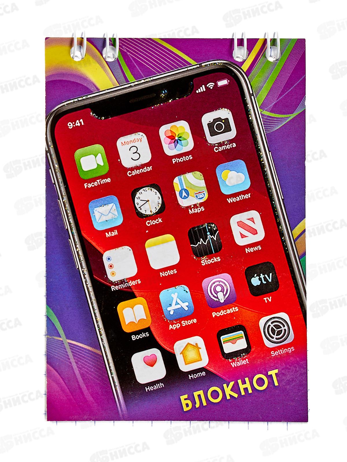 Код:178777; Блокнот 24листа ПГС Айфон, 68*98, глиттер., на гребне. *24
