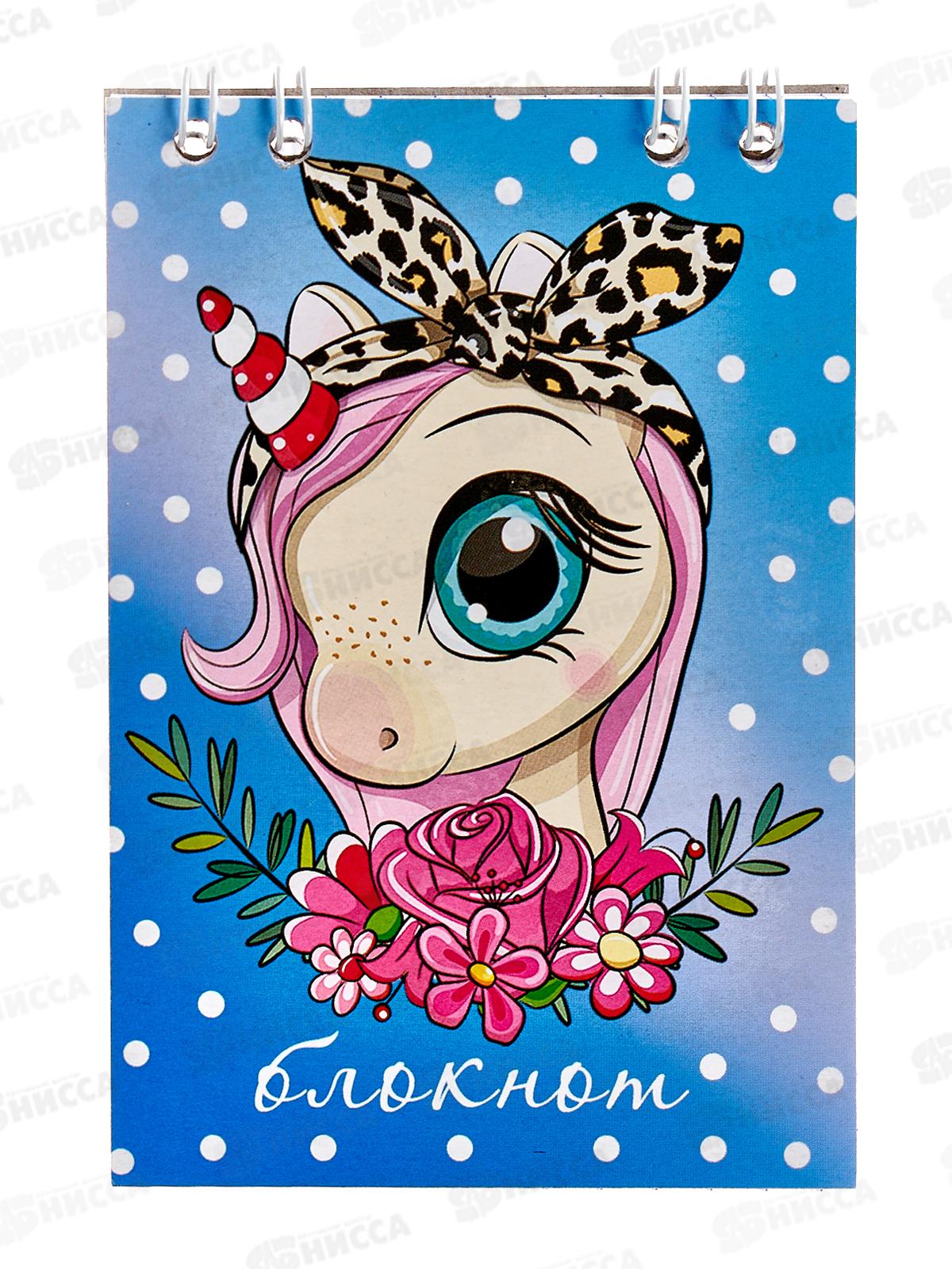 Код:315928; Блокнот 24л ПГС Единорог, 68*98, А7, глит., греб. *24