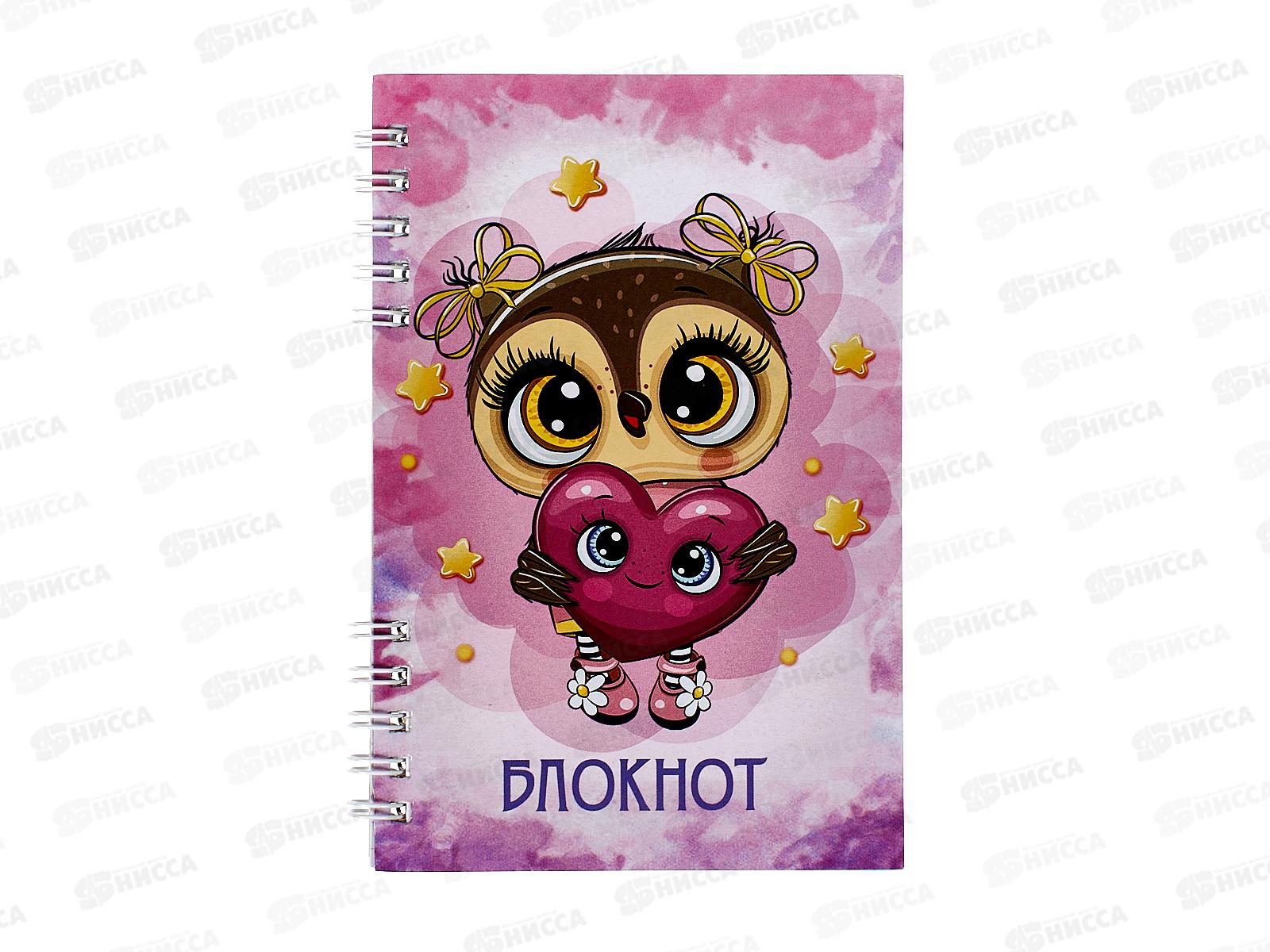 Код:180607; Блокнот 80листов ПГС Совушки, 100*150, глиттер.,на гребне. *12