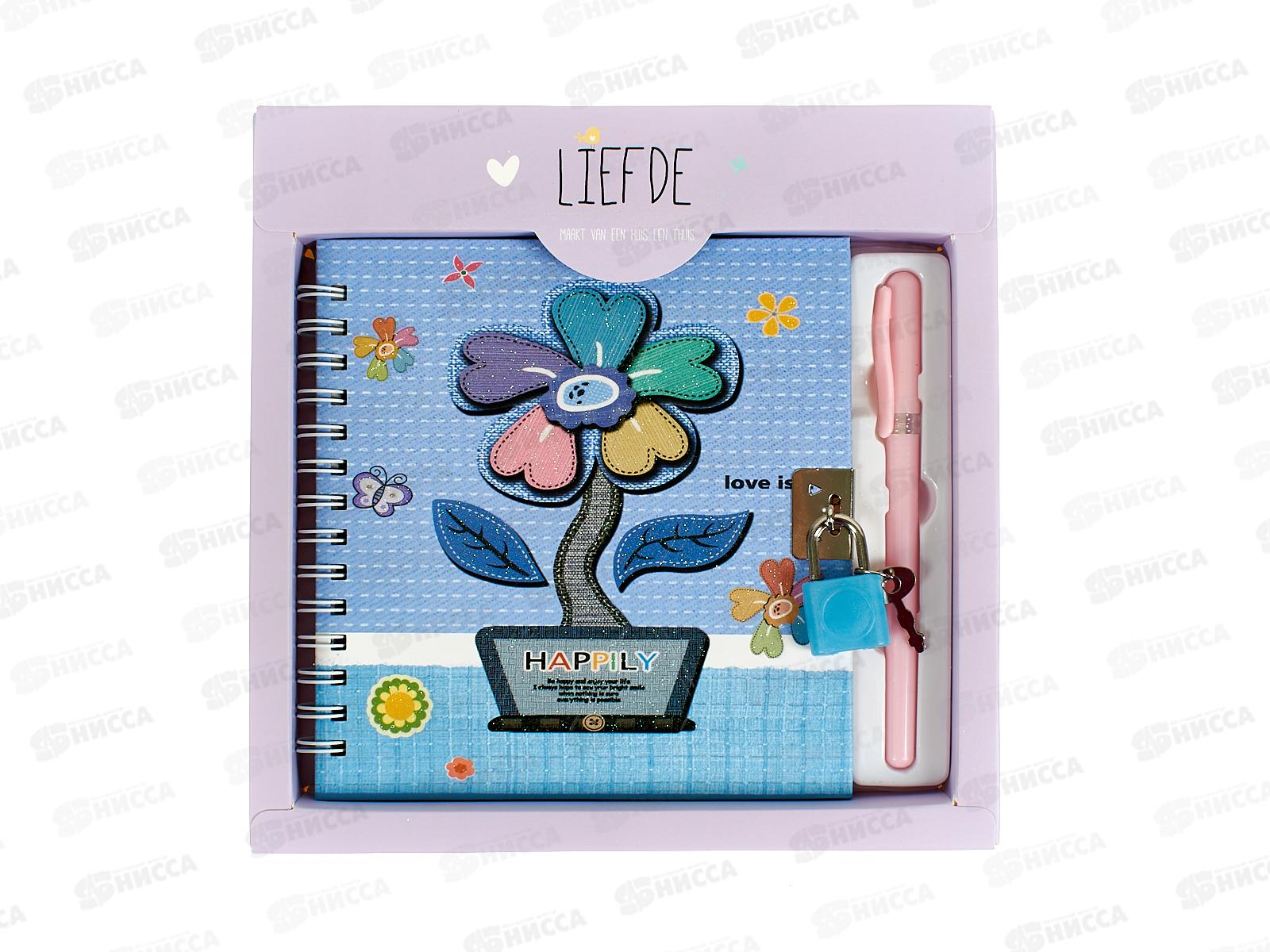 Код:560164; Блокнот с замочком и ручкой ПГС 45л Цветок,13*13,5 Р21548-19
