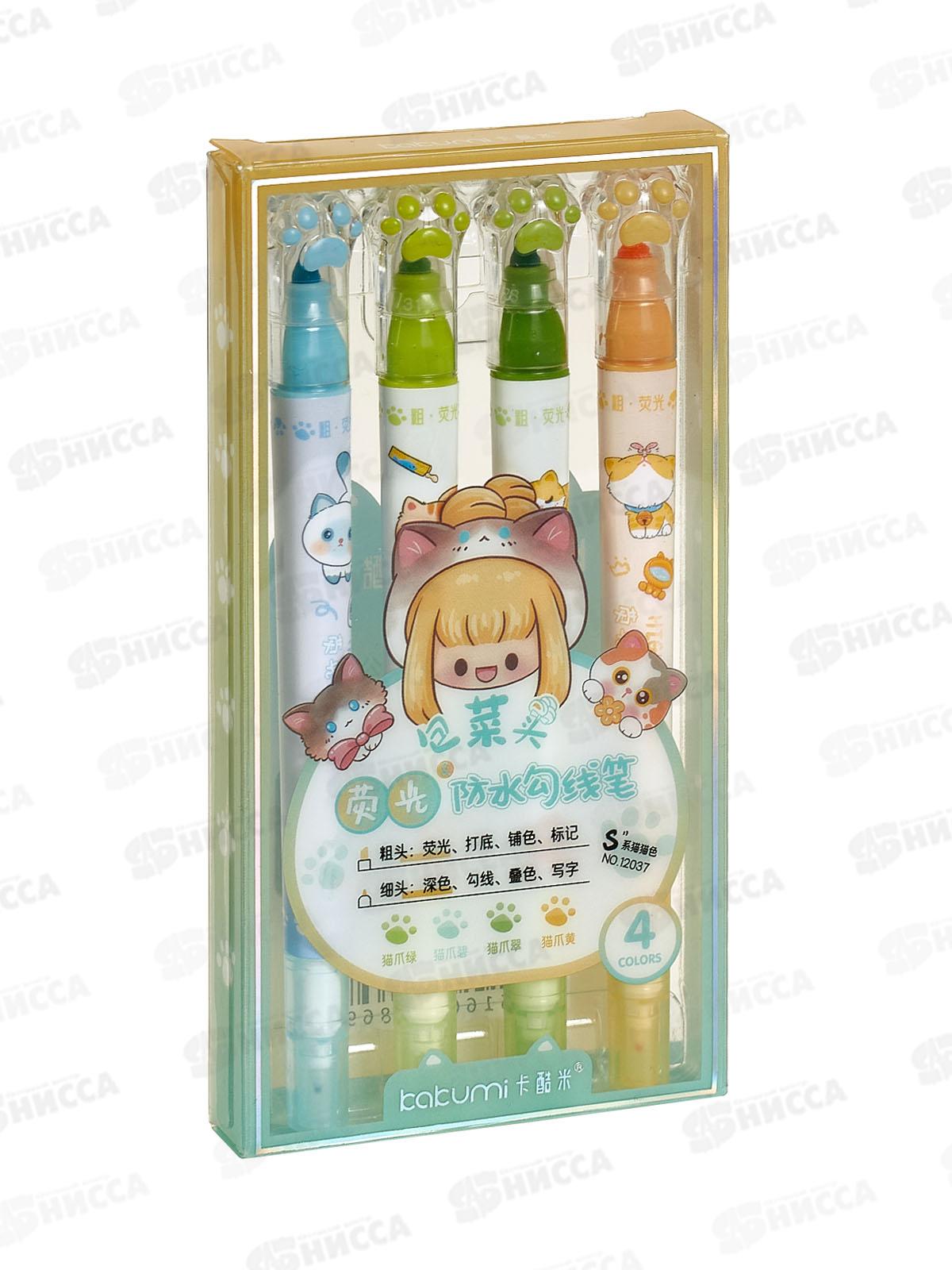 Код:578630; Набор маркеров-текстовыделителей 2-х сторон. 4цв Котики и лапки 12037