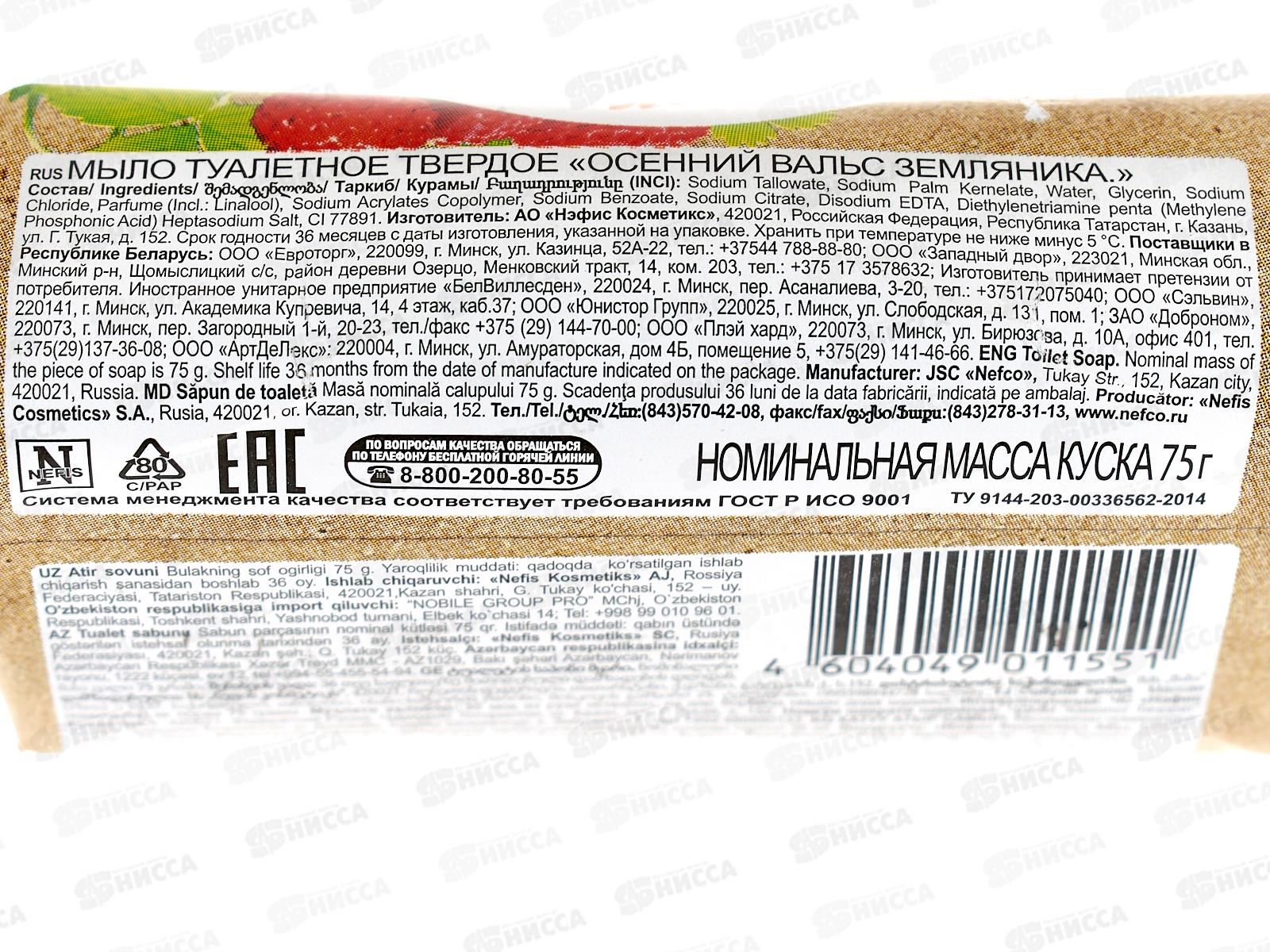 ОСЕННИЙ ВАЛЬС мыло 75г Земляника *120 /376-2