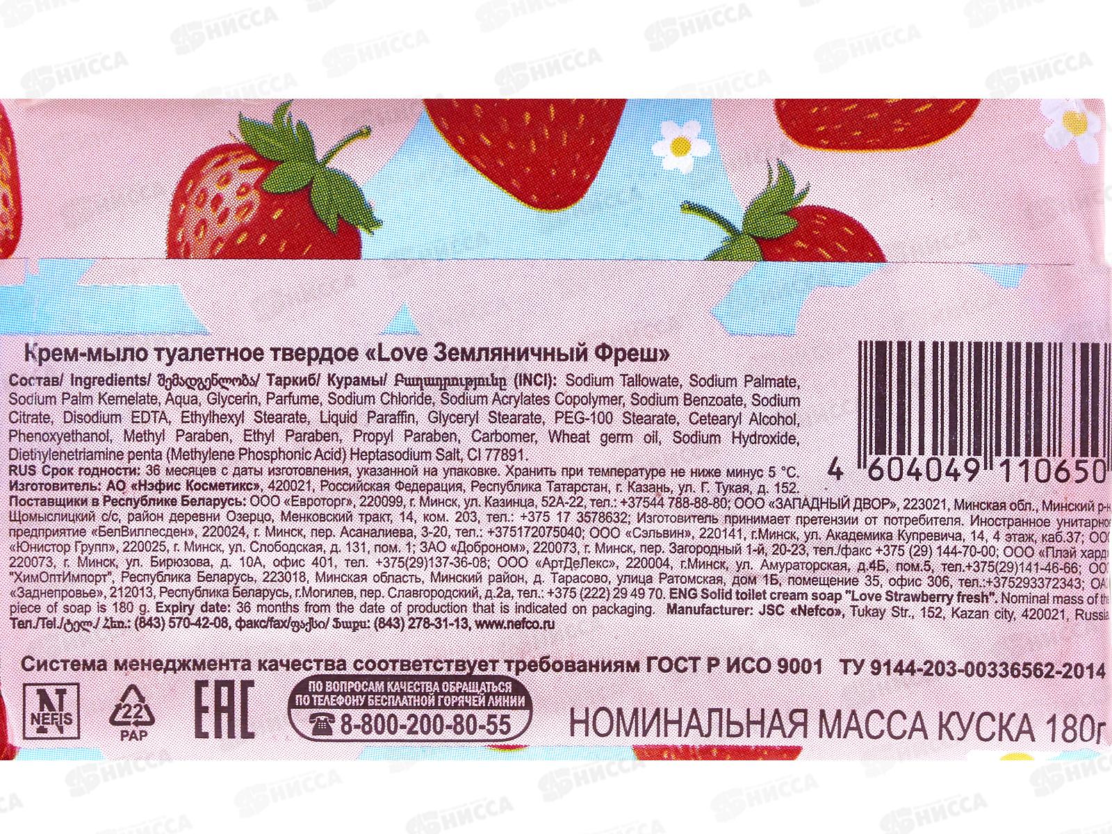 Love крем-мыло Земляничный фреш 180г, 1202-2