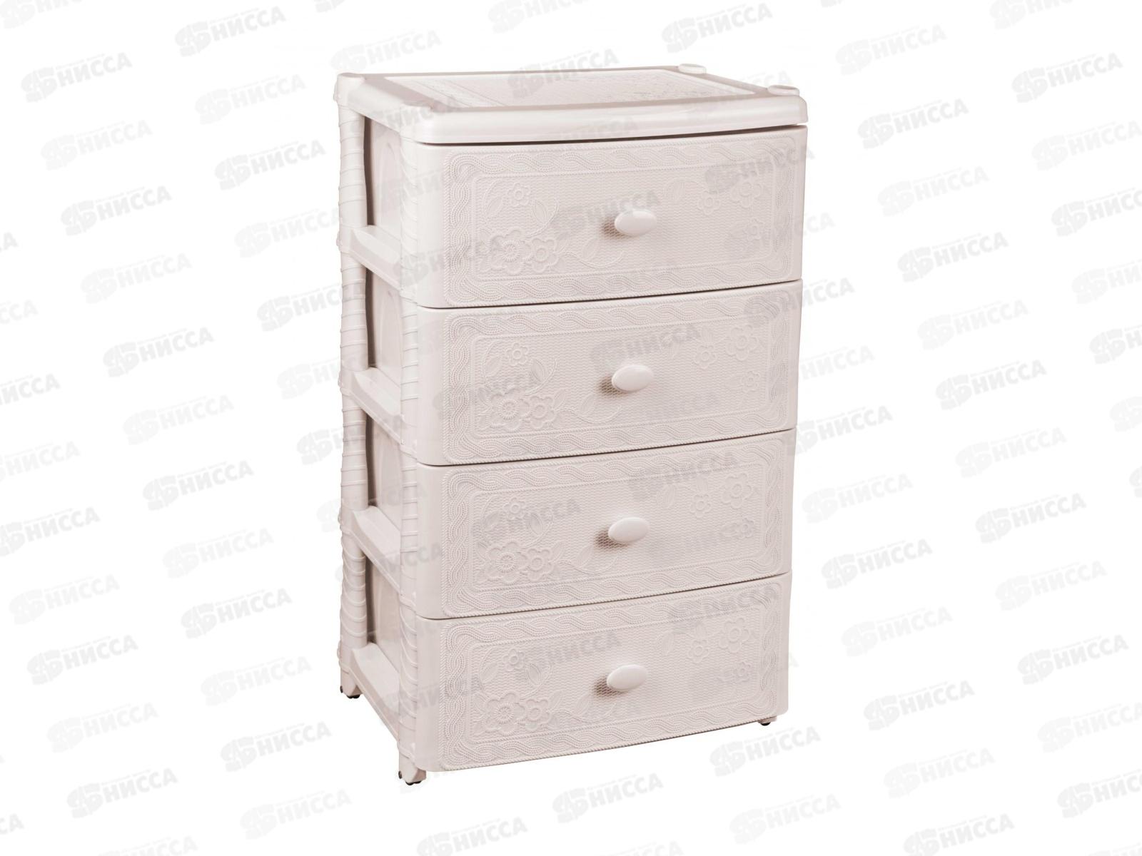 Код:007777; Комод 4-х секционный "Плетенка" слоновая кость М2430