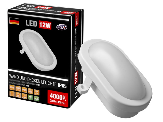 Код:287841; Светильник светодиодный REV Oval, 12Вт 4000K, овальный 168*70мм, IP65-влагозащищенный, 28921