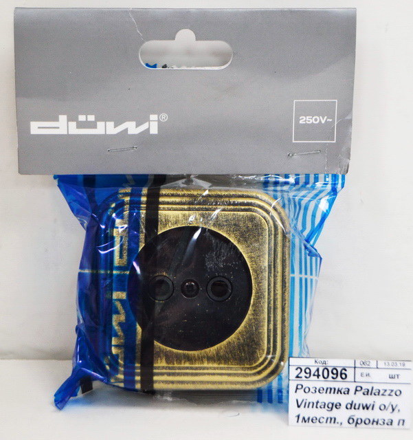 Код:294096; Розетка Palazzo Vintage duwi открытой установки, 1 местная, бронза патина, 26419 *20