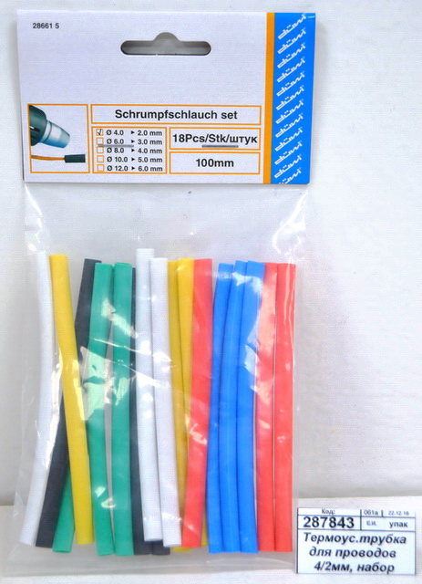 Код:287843; Термоусаживаемая трубка для проводов 4/2мм, набор 18шт разных цветов *10