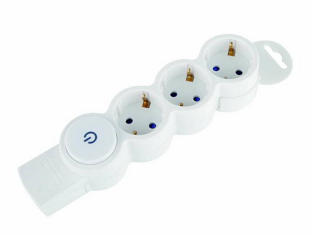 Код:294086; Колодка розеточная с выключателем REV Quick Fix на 3 гнезда, с заземлением и защитными шторками, максимальная нагрузка до 3680Вт, 32018 *60