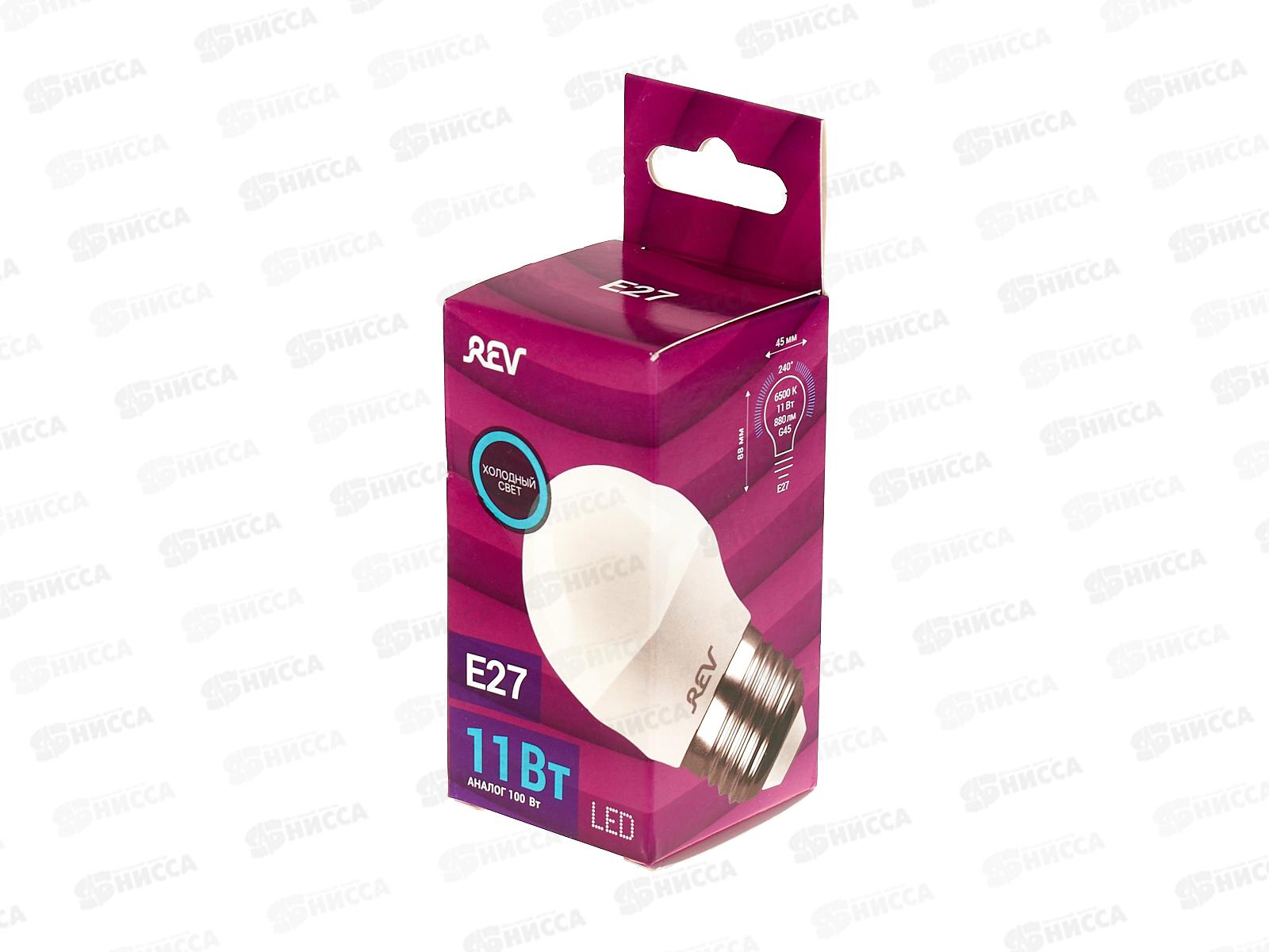 Код:332380; Лампа светодиодная REV G45 (шарик), 11Вт, цоколь-E27, 6500К-дневной свет *10/50