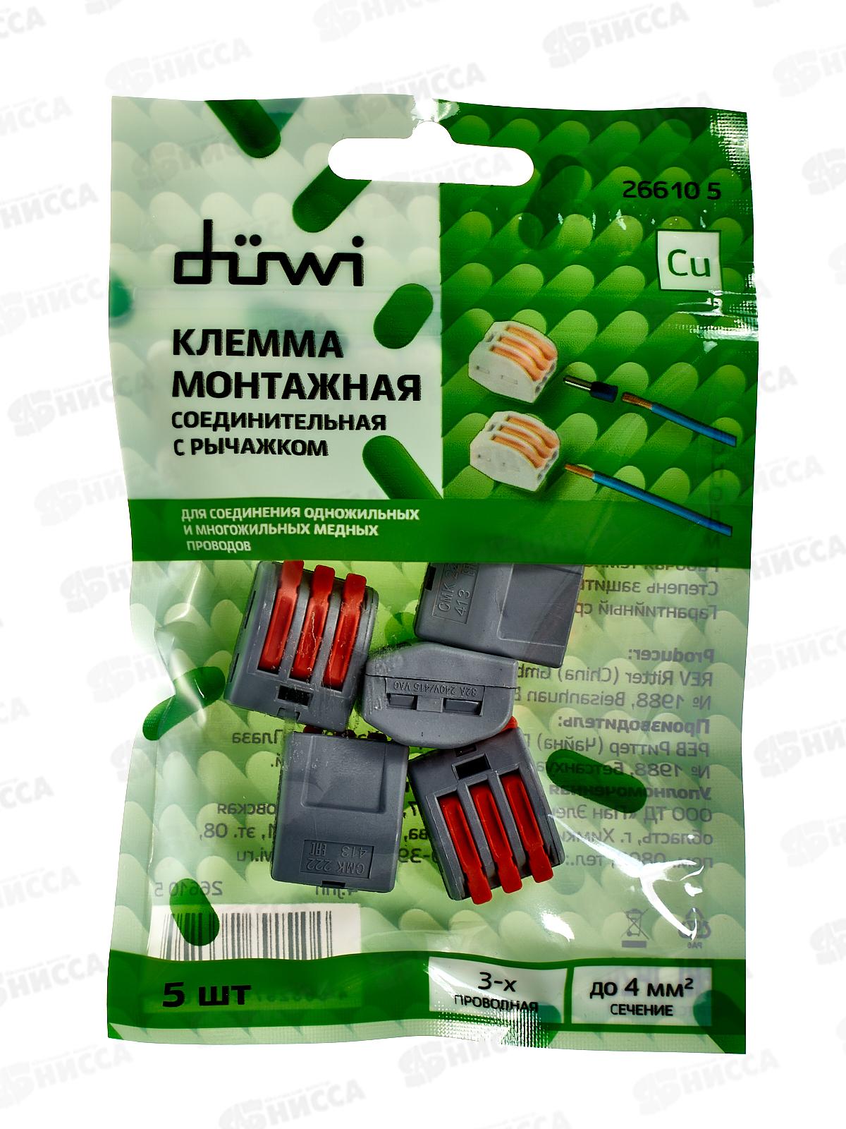 Код:486890; Клемма рычажковая Duwi серые, 5шт, 4кв.мм, СМК 222-415, 26611 *10