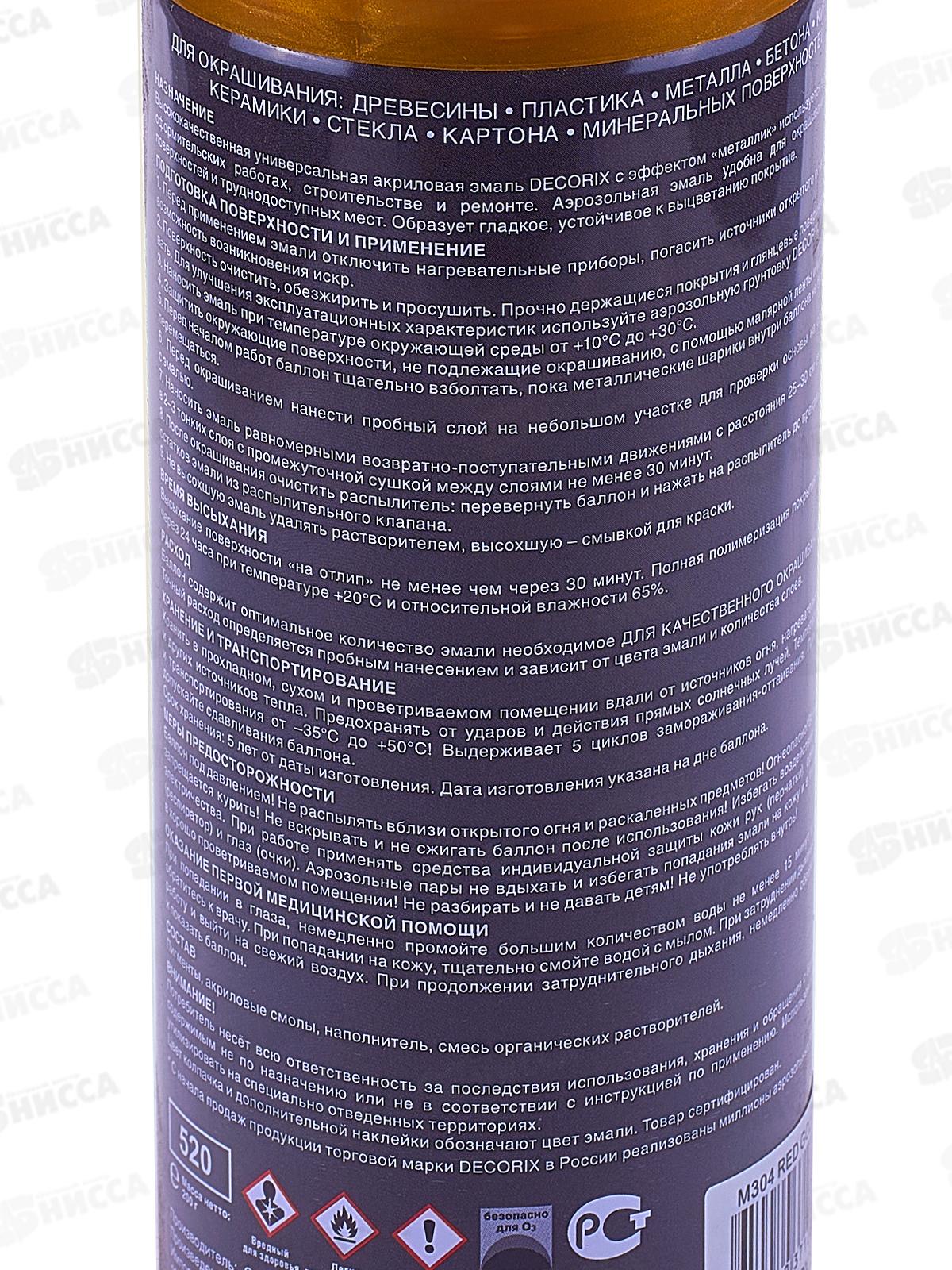 Аэрозольная эмаль "металлик" DECORIX, 520мл, золото *12