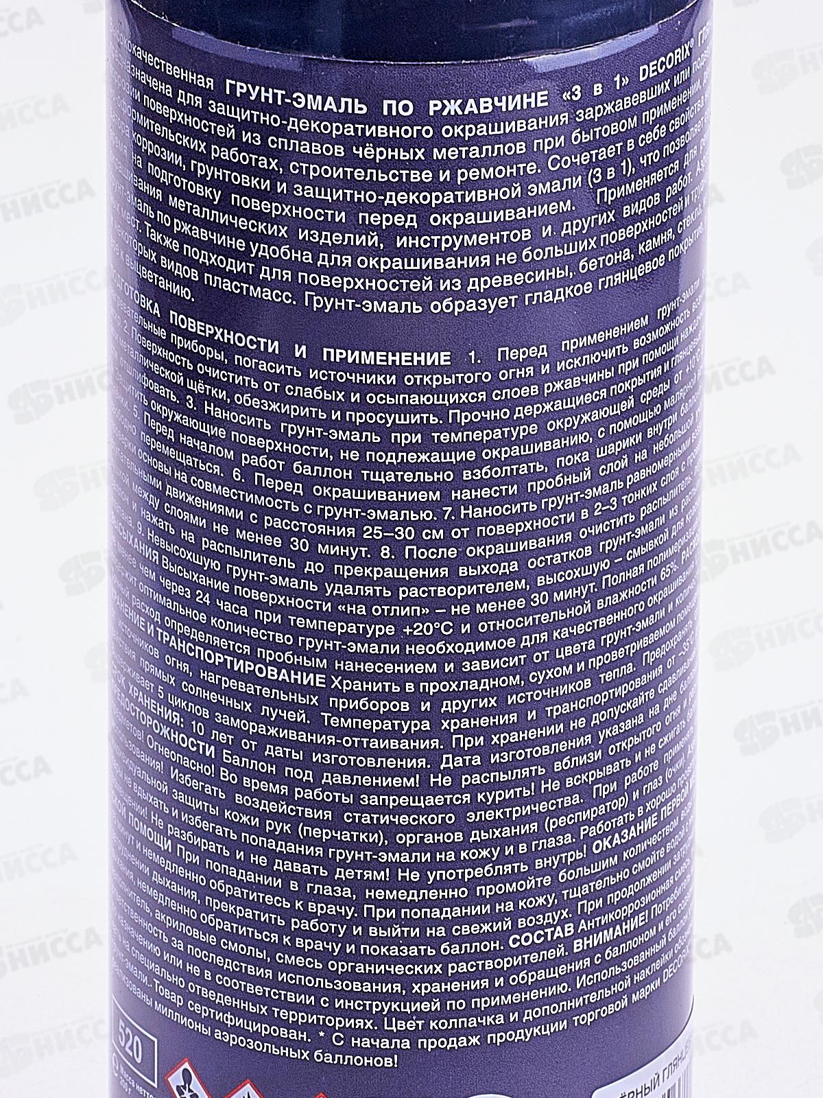 Аэрозольная грунт-эмаль по ржавчине 3в1 DECORIX, 520мл, черный глянцевый *12