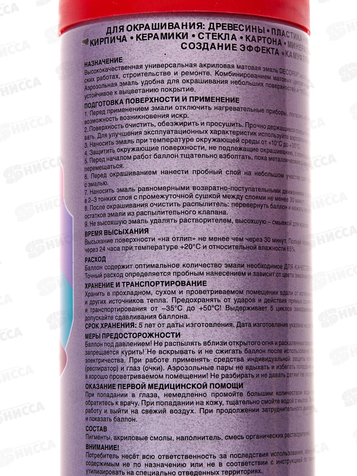 Аэрозольная эмаль акриловая универсальная DECORIX 520мл, цвет-красный матовый *12