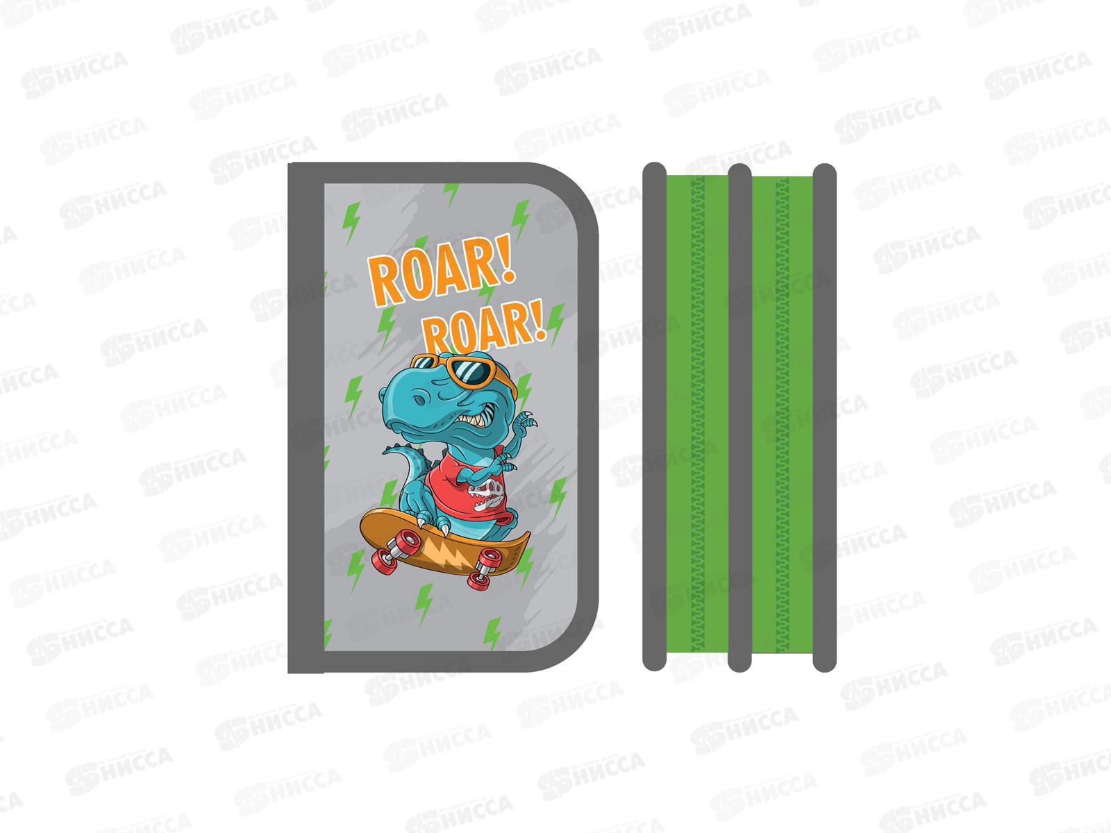 Код:576935; Пенал ПЧЕЛКА 3отд., Дино на роликах 190*105, ПО-110 *15
