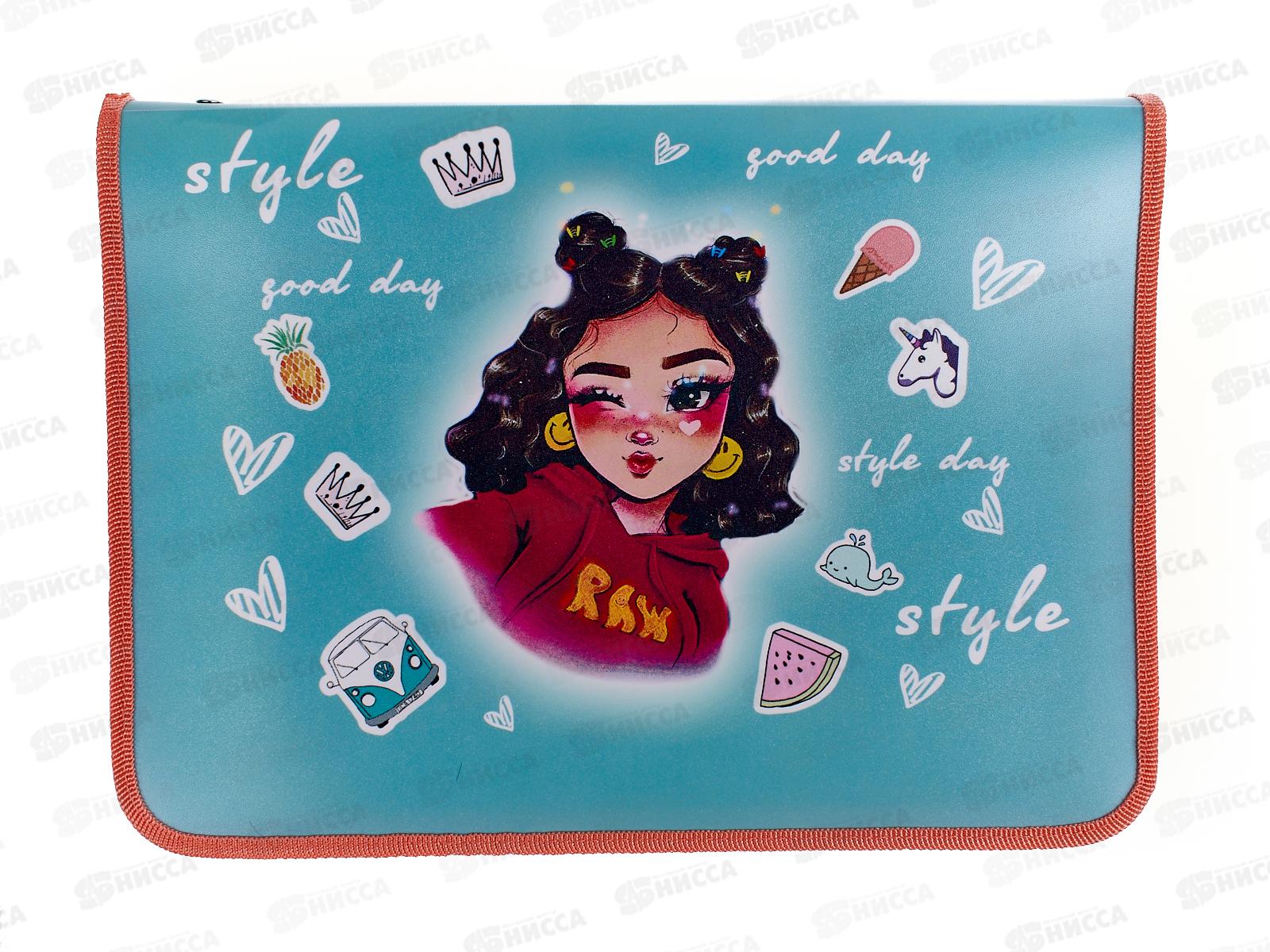 Папка д/труда ПЧЕЛКА А4 молн.вокруг Прикольная девчонка, ПТР-5 *50