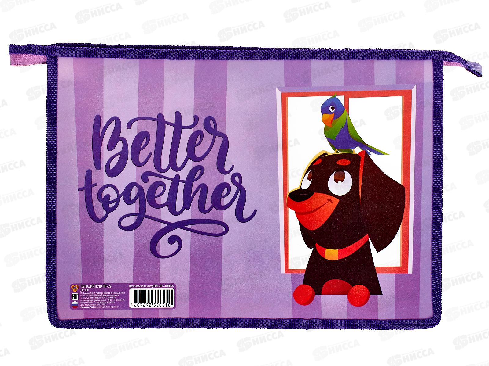 Папка д/труда ПЧЕЛКА А4 молн.верх.диз. Друзья 2023 ПТР-22 *40