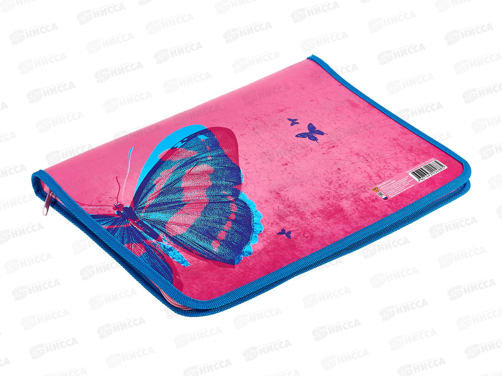 Папка д/тетр. ПЧЕЛКА А4 молн. вокруг, Бабочка на розовом, ПМ-А4-04 *50