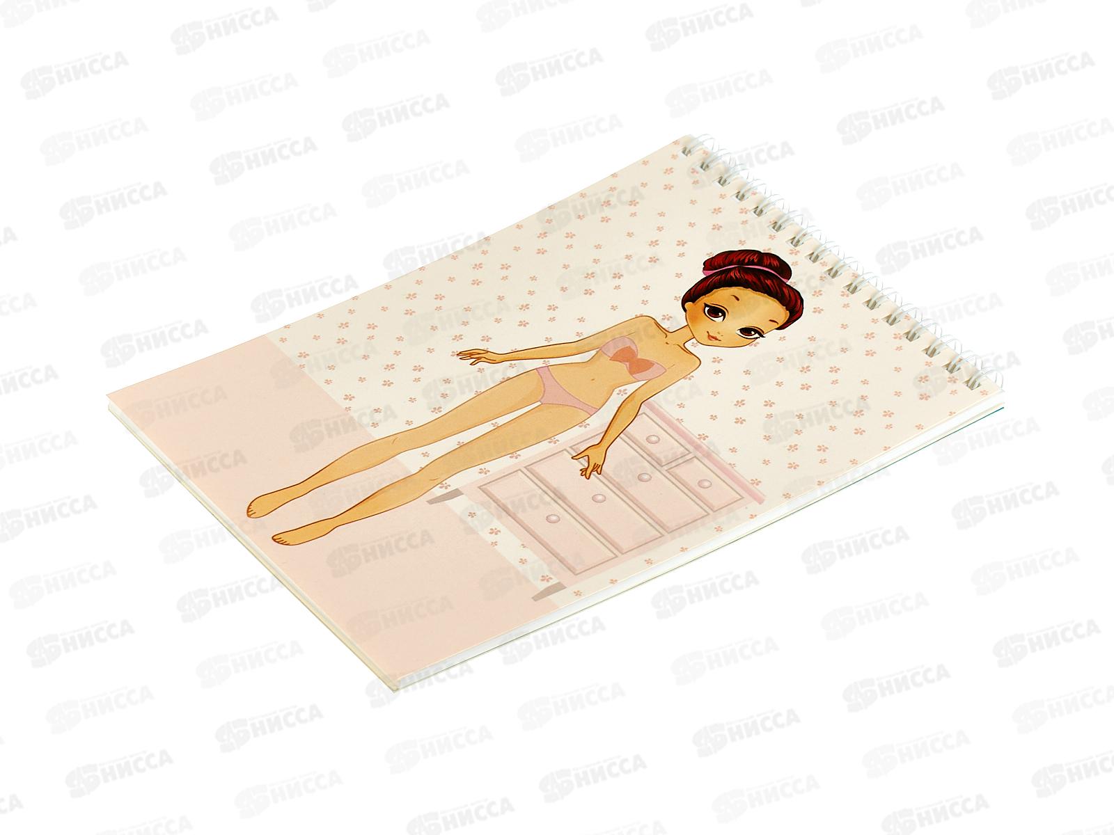 Комбинированный блок: 1 лист мелованного картона с цветным изображением куклы + 6 ч/б листов одеждой и аксессуарами для раскрашивания и вырезания.+ 13 ч/б листов-раскрасок с моделью.