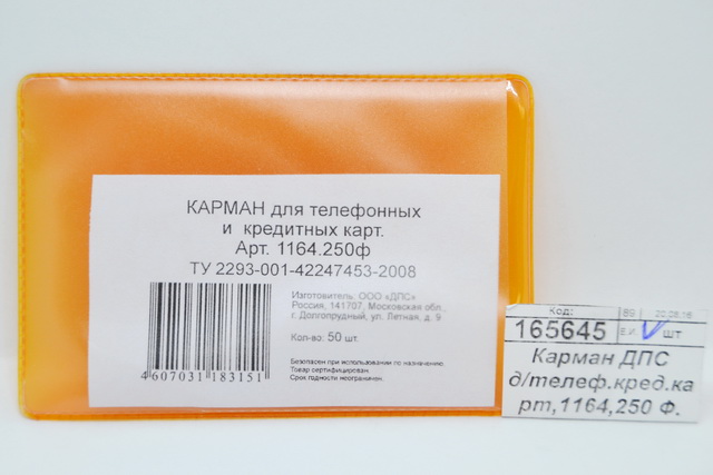 Код:165644; Карман ДПС для телефонных, кредитных карт. 1164.250 *50/3500