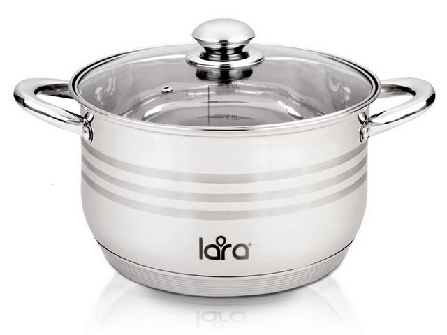 Музыка, воплощенная в металле! Звонкие ноты в зеркальном блеске чистейшей полировки! LARA “SONATA” звучит, как яркий солнечный день. Музыка и технологии! 9-ступенчатое дно – нотка неожиданной роскоши! Хочется играть на разный лад? Готовьте и на плите, и в духовке, LARA “SONATA” умеет! А если привыкли к четкому ритму – мерная шкала поможет играть в такт. Музыка и качество! 5-тислойное капсулированное дно для равномерного разогрева, полная индукция, надежные массивные рукоятки со сниженной теплопроводимостью за счет трубчатой конструкции. Разборная ручка крышки для легкого удаления жира. Сочините вашу собственную кулинарную сонату!