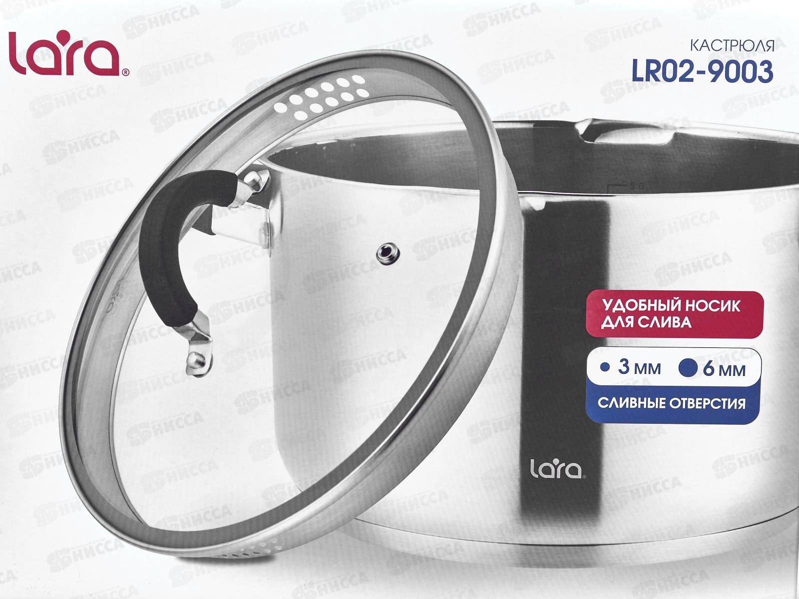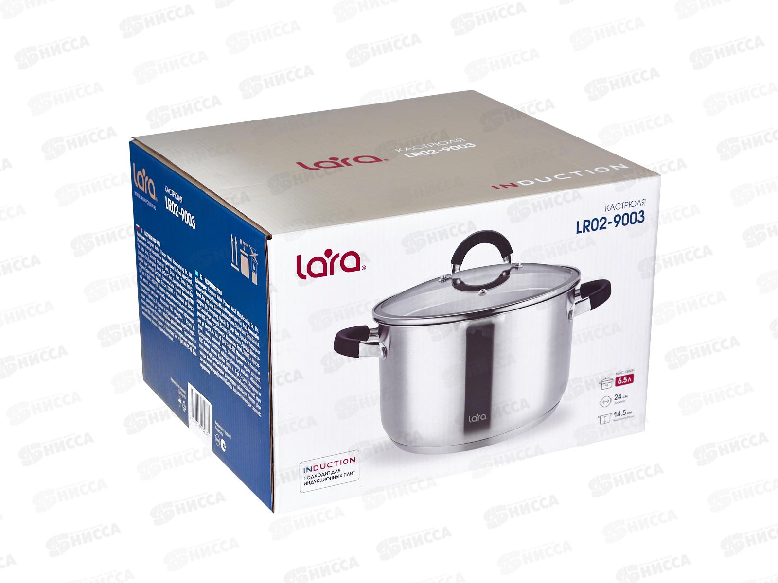 Кастрюля Lara LR02-9003 нержавеющая сталь 24*14,5см 6,5л индук, все виды плит, слив